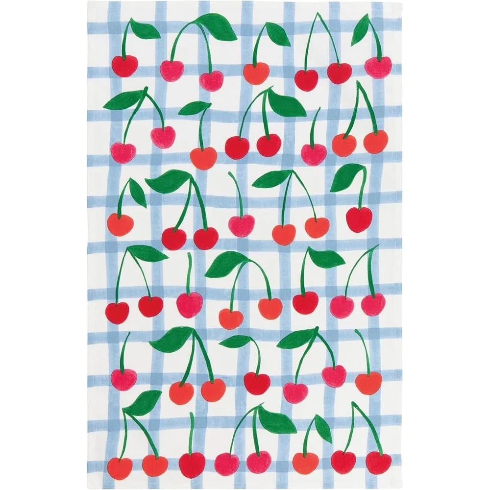 Experience a splash of joy in your kitchen with our Very Cherry printed dish towel, featuring vibrant reds and periwinkle plaid.