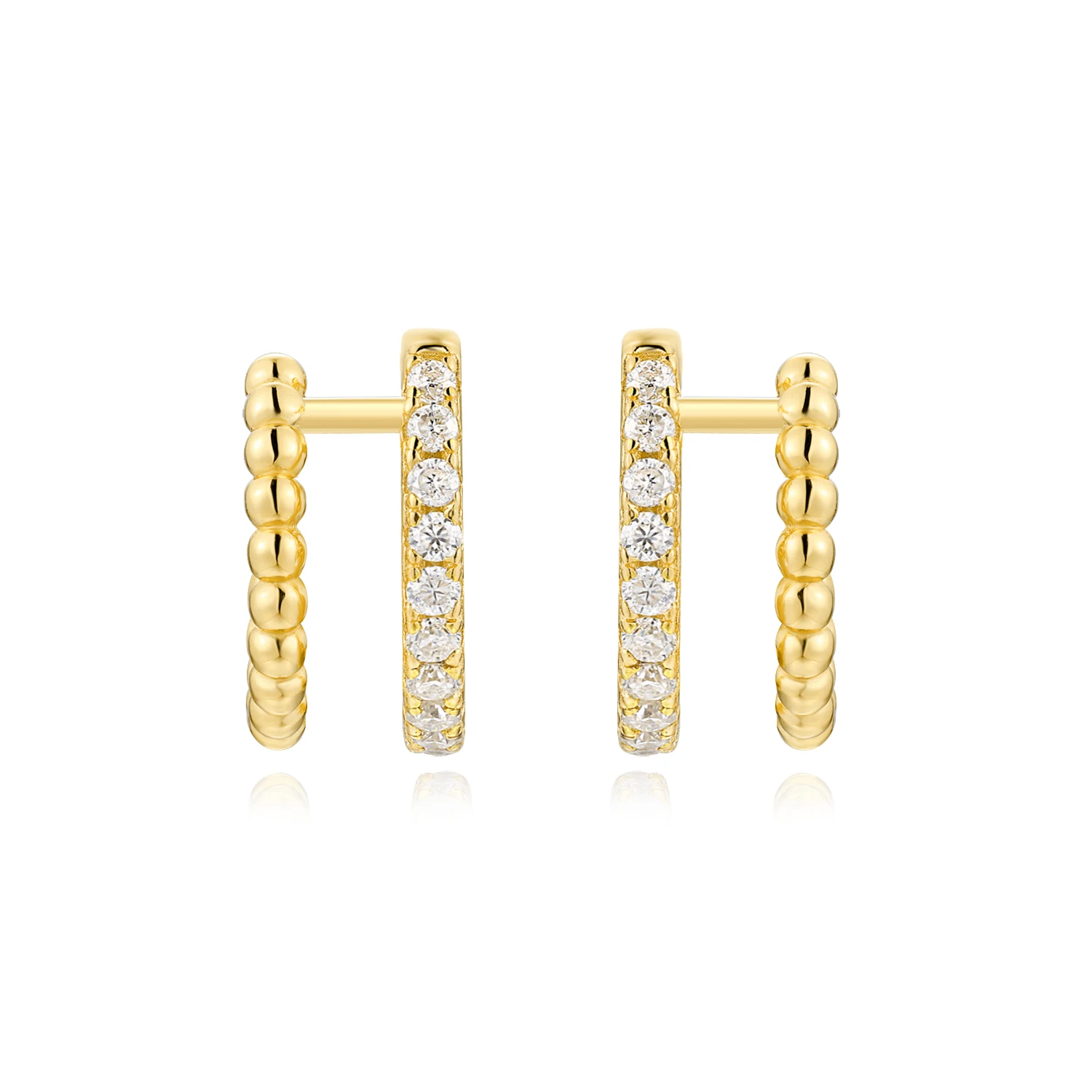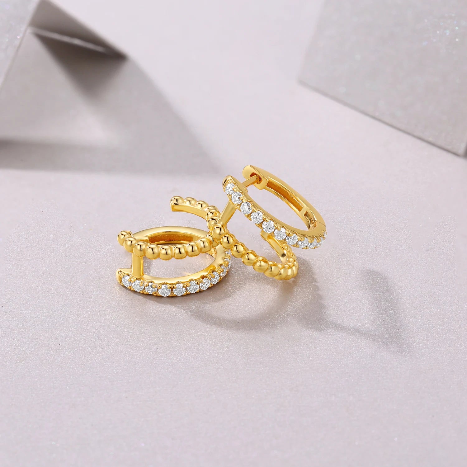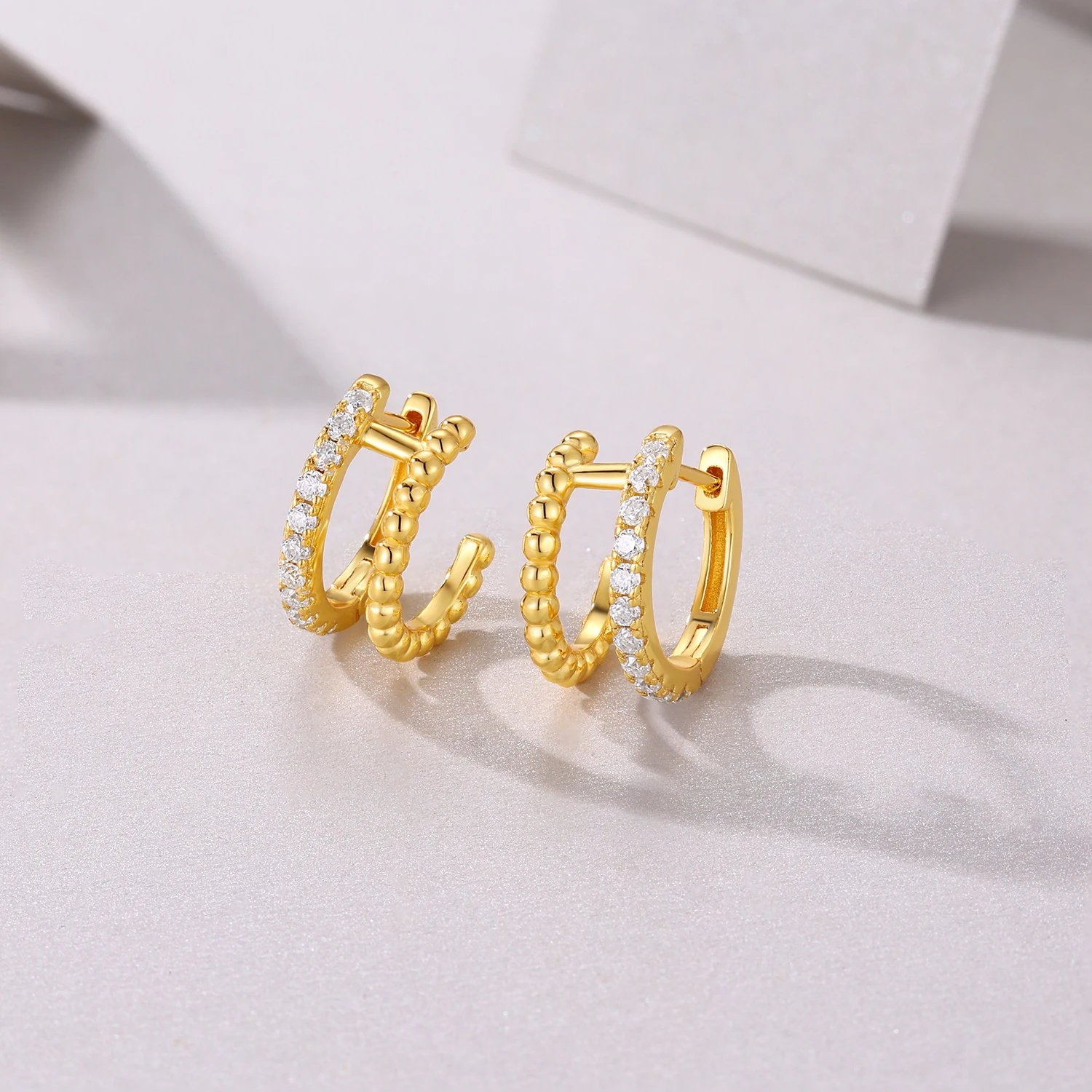 1pcs Gold Hoop Earrings 925 Sterling Silver 18K Gold Plated Beaded Design with CZ Stones for Women Jewelry Gift