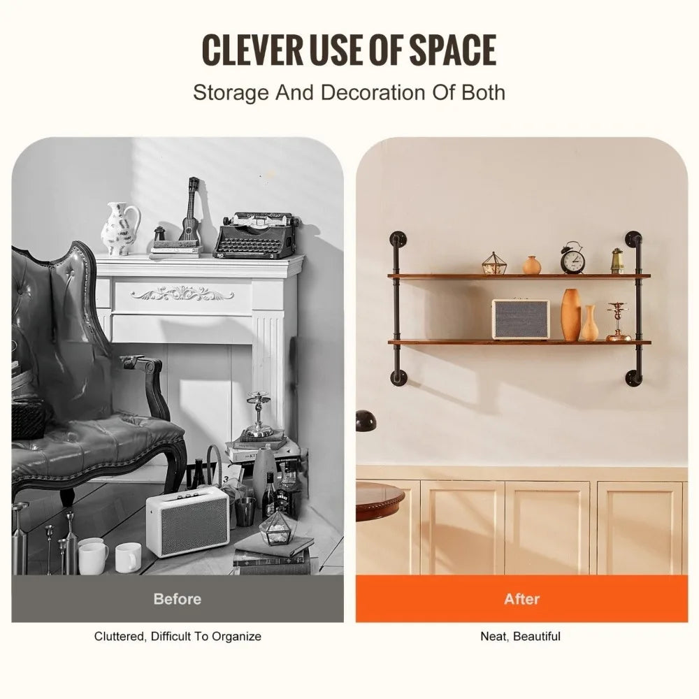Transform your space with the 2 Tier Industrial Pipe Shelf, measuring 48x9.84 inches, a perfect wall-mounted storage solution ideal for kitchen and bedroom organization. This stylishly designed shelf not only enhances your decor but also offers practical storage, making it a must-have for modern homes. Its unique industrial pipe design seamlessly blends functionality with aesthetic appeal, setting it apart from typical shelves in the market.