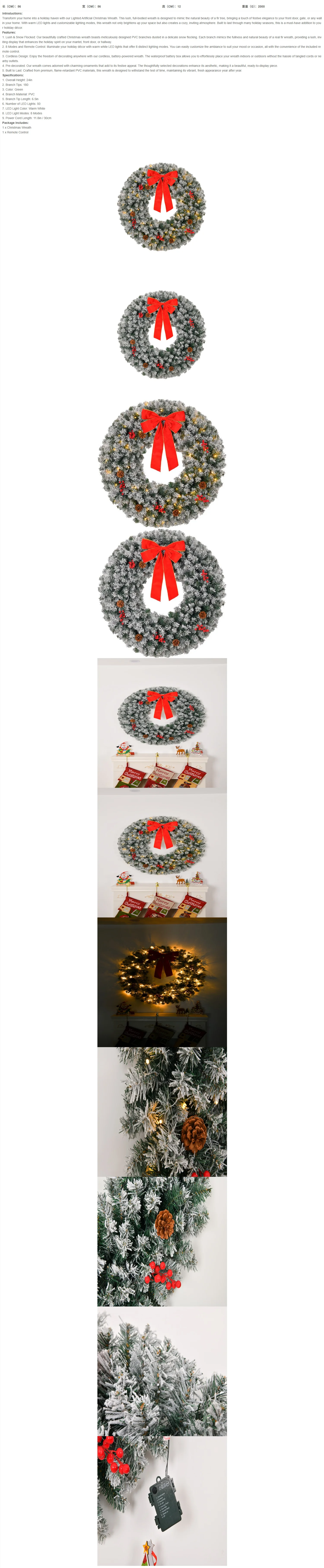 24" Pre-lit Battery Op Wreath w/Remote, Snow Flocked Xmas Wreath w/50 Warm Lights, 180 PVC Tips & Ornaments, Perfect for Front