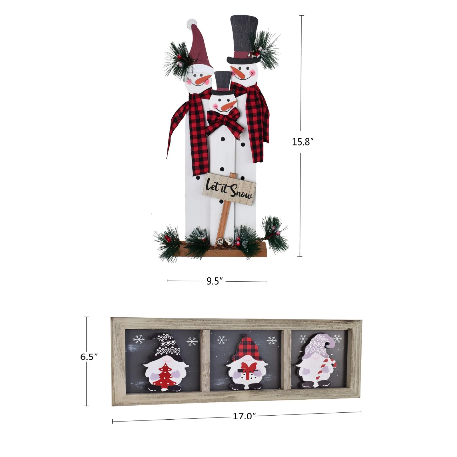2pcs Wooden Snowman Family Sign Tabletop Mantel Centerpieces Merry Christmas Snowman Figurines Winter Xmas Indoor Outdoor Gift