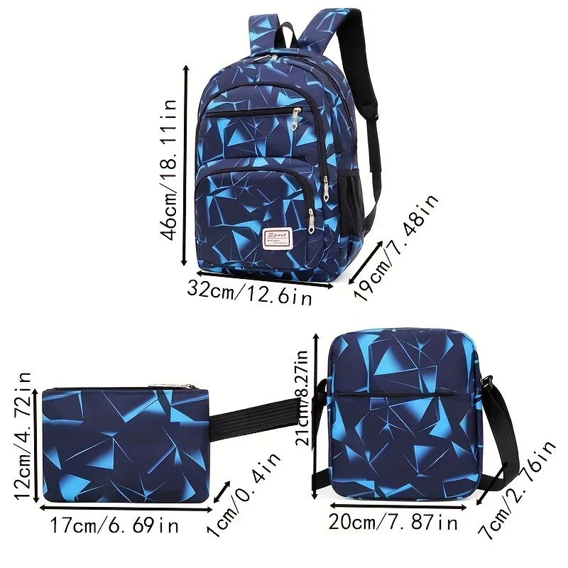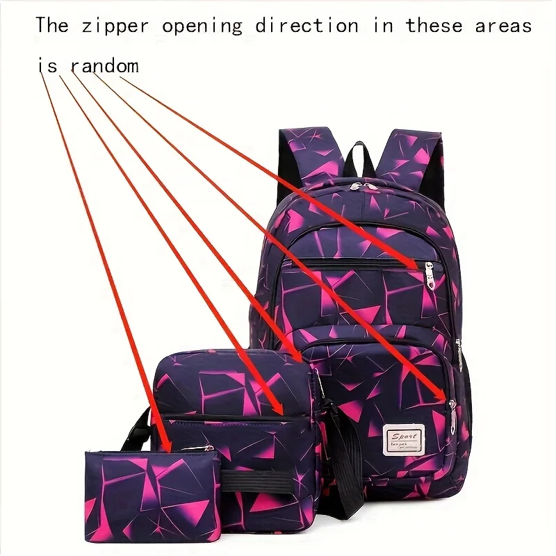 3PCS Large Capacity Backpack Set, Preppy Back To School Daypack, Travel Knapsack, Laptop Bag, Shoulder Bag & Pencil Bag