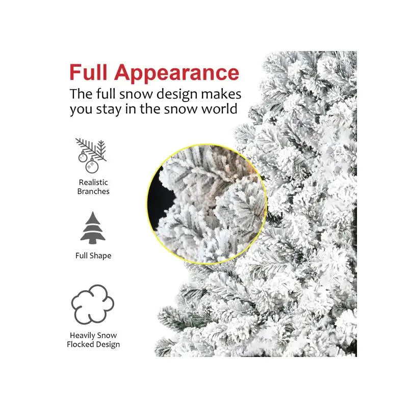 6ft Flocked Christmas Tree, 678 PVC Branch Tips, Round Top, Foldable Base for Indoor Holiday Decor
