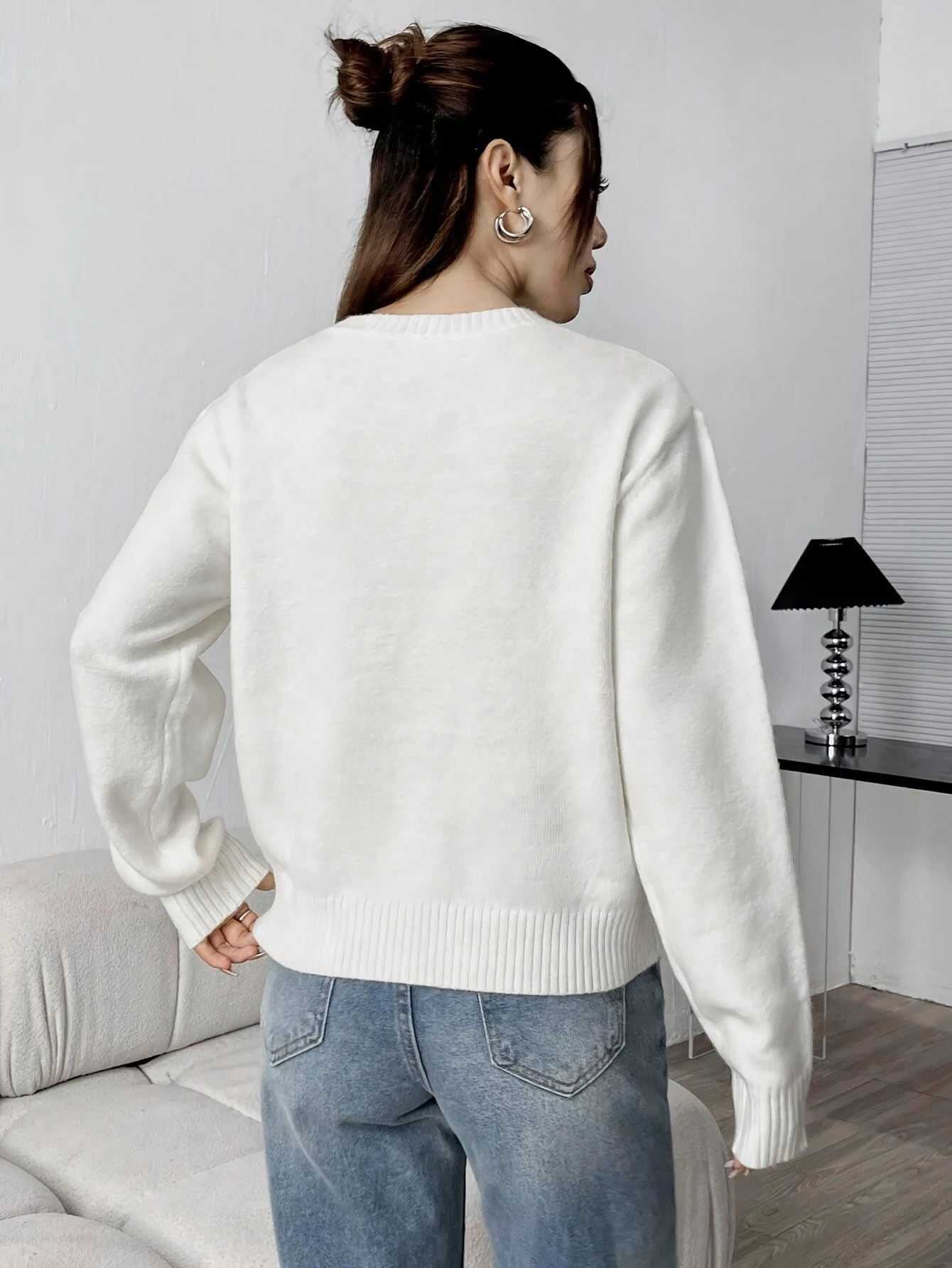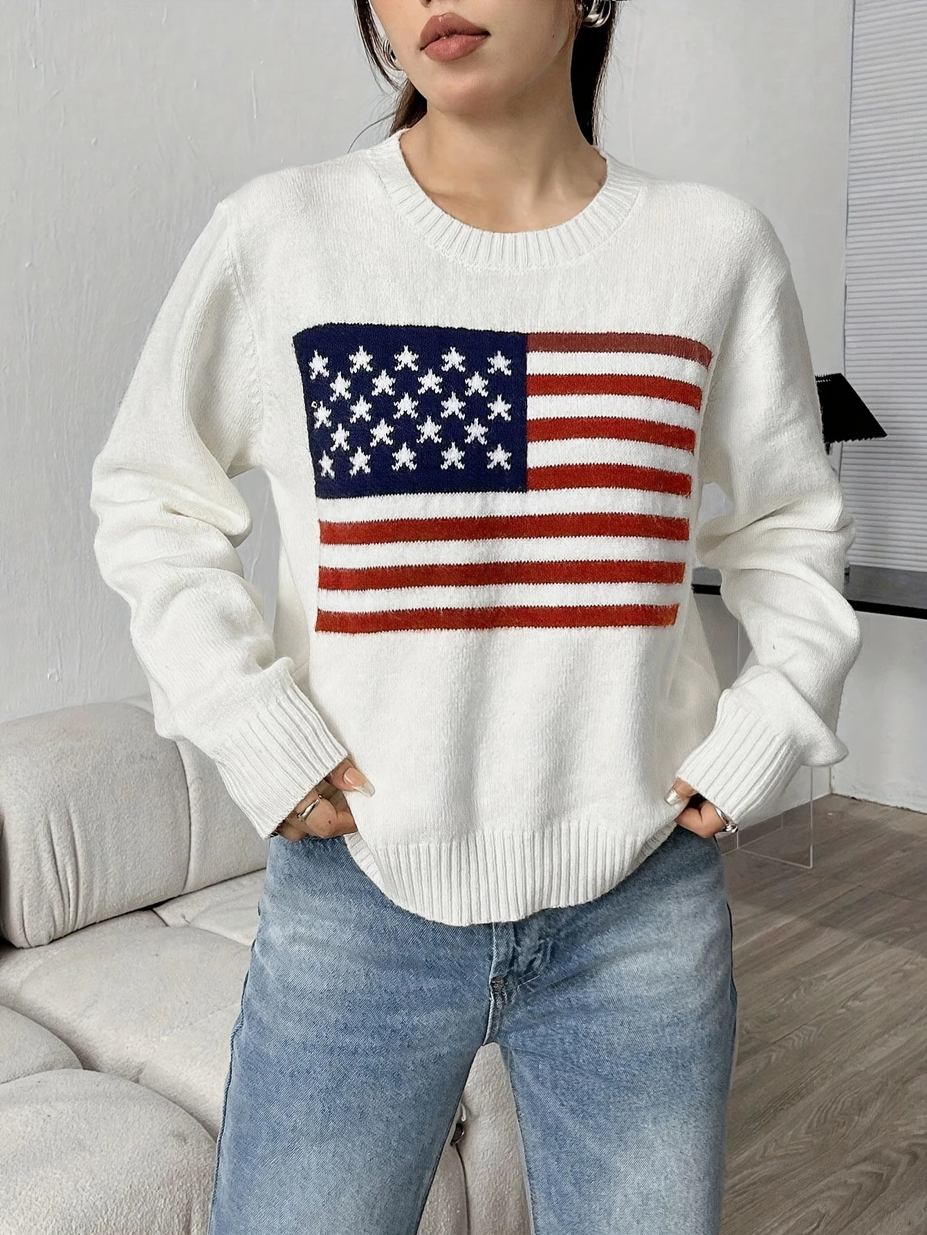 Autumn and Winter New Fashion Woman Sweater Flag Knit Sweater Women's Elegant Casual Collar Long Sleeve Sweater Top