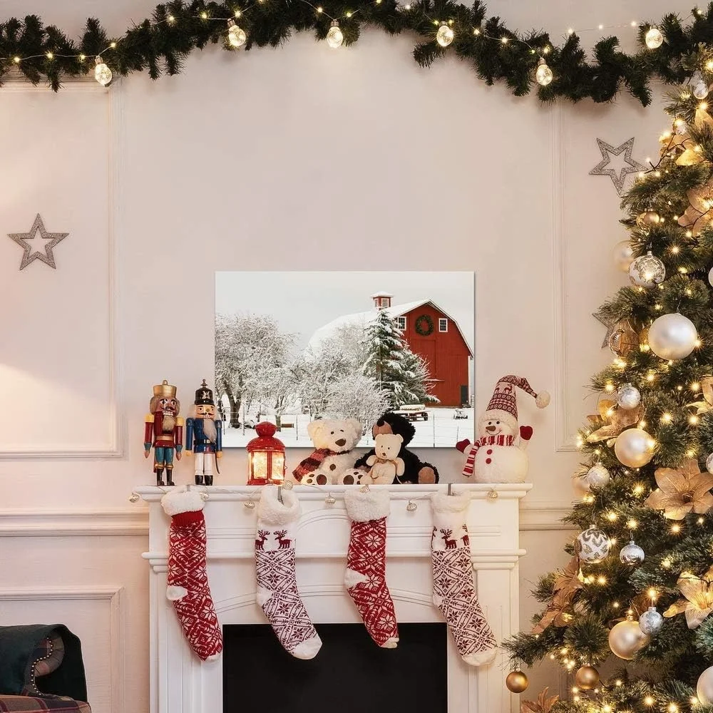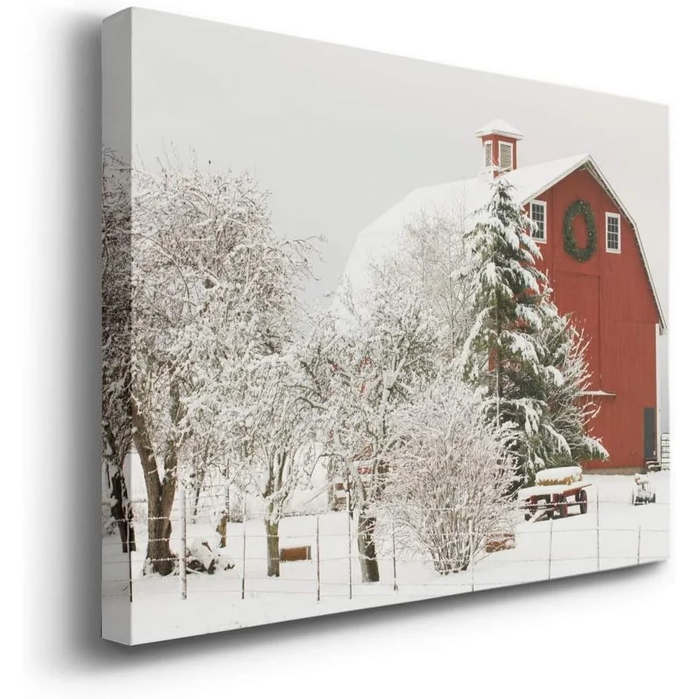 Canvas Wall Art Snow Covered Red Barn Modern Home Decor High Quality Prints Gallery Wrapped Easy Mounting Ideal Gift Made in USA