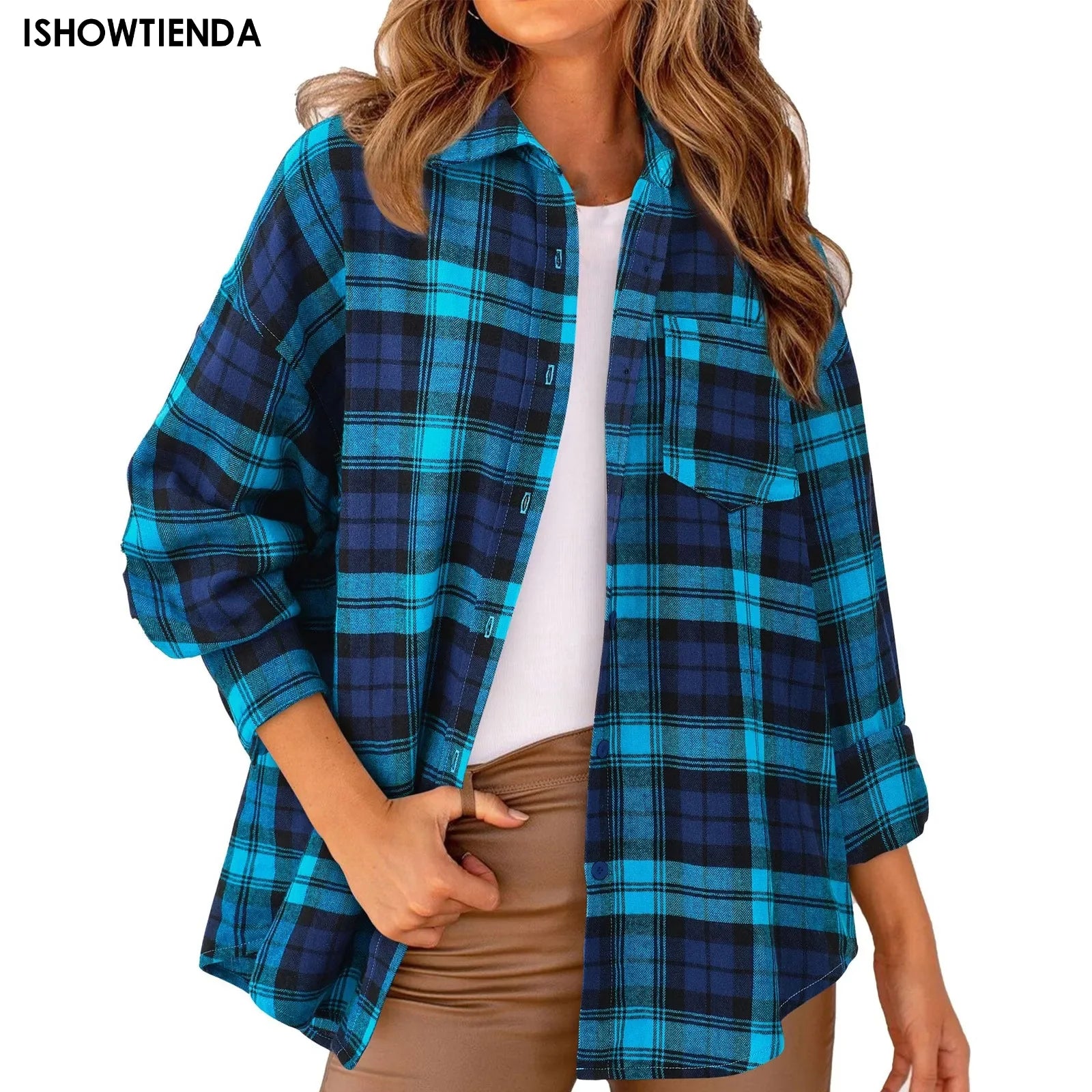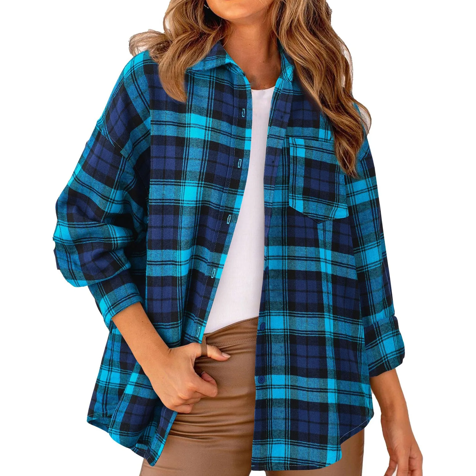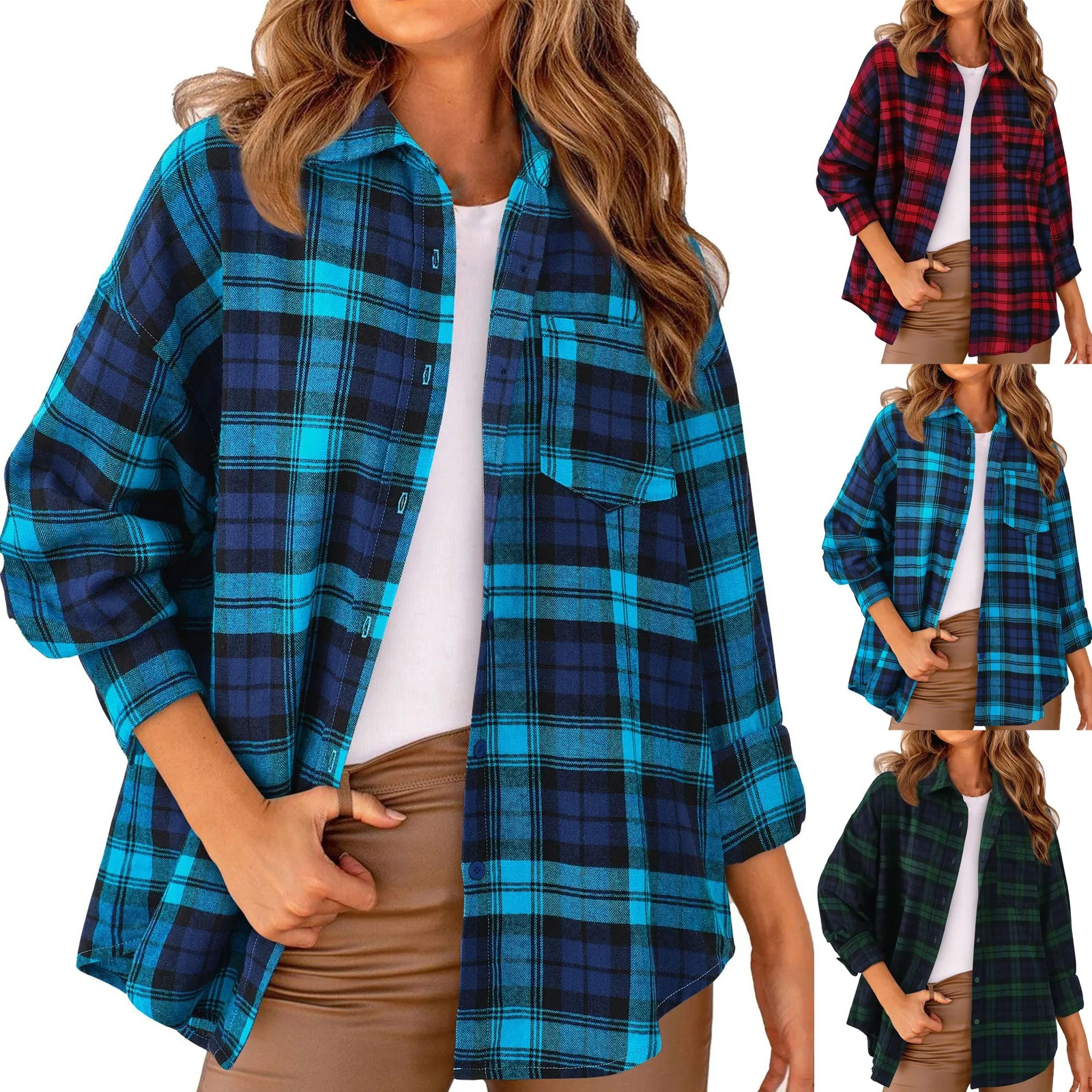 Casual Women's Plaid Shirt 2025 Autumn New Loose Long Sleeve Lapel Single Breasted Blouses Soft Sweet Female Coat Streetwear