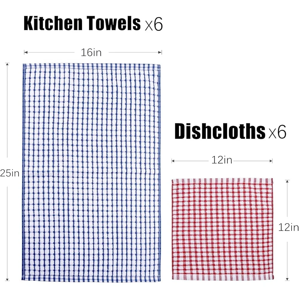 Cotton Kitchen Towels Dishcloths Set Bulk 16x25 Cooking Baking Cleaning Wash Rags Cloths Daily Use