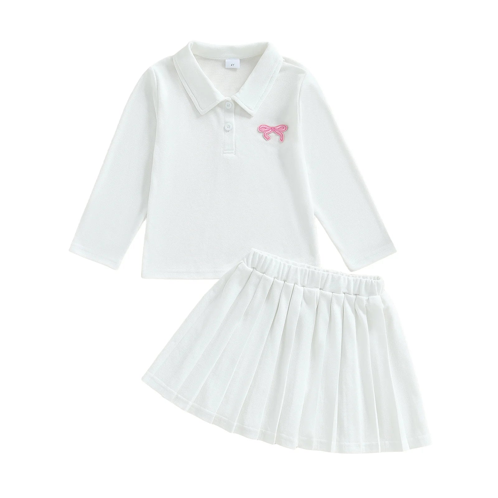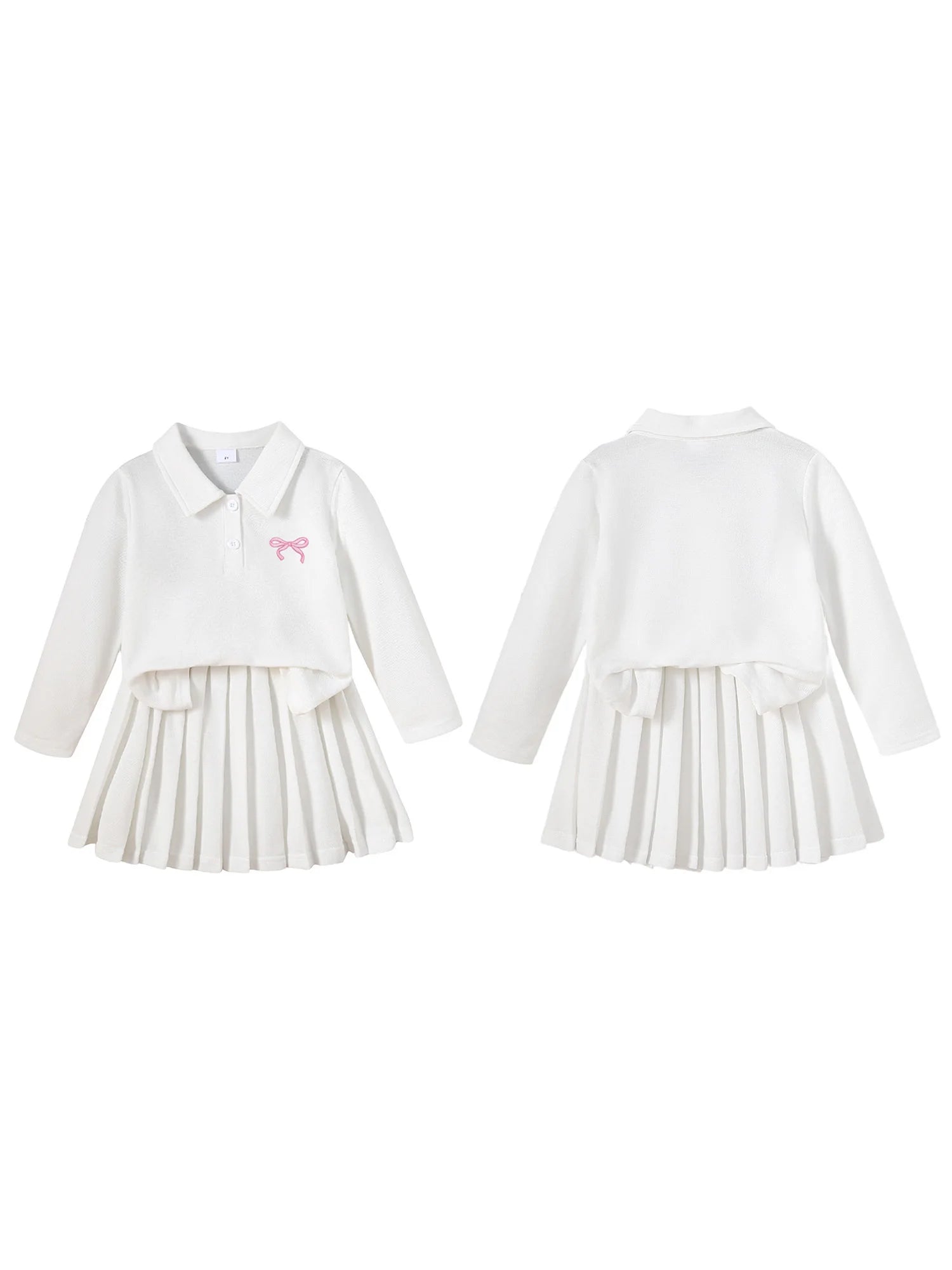Toddler Girl Fall Outfit Bow Embroidery Long Sleeve Lapel Sweatshirt with Pleated A Line Skirt 2Pcs SetSize(cm)