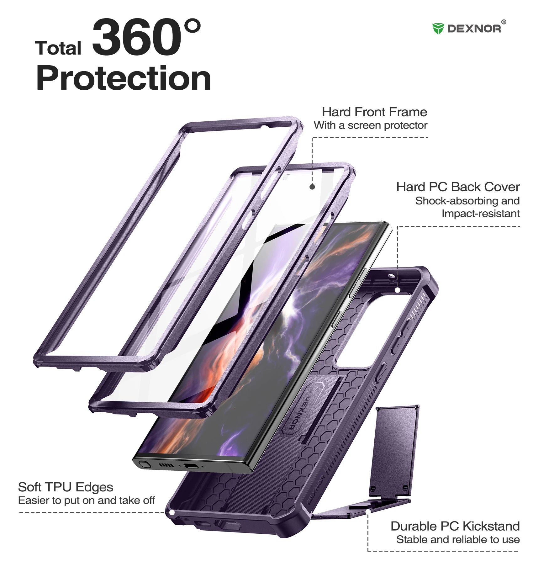 Dexnor for Samsung Galaxy S23 Ultra Case Full Body Heavy Duty Military Grade Protection with Built-in Screen Protector and Kickstand
