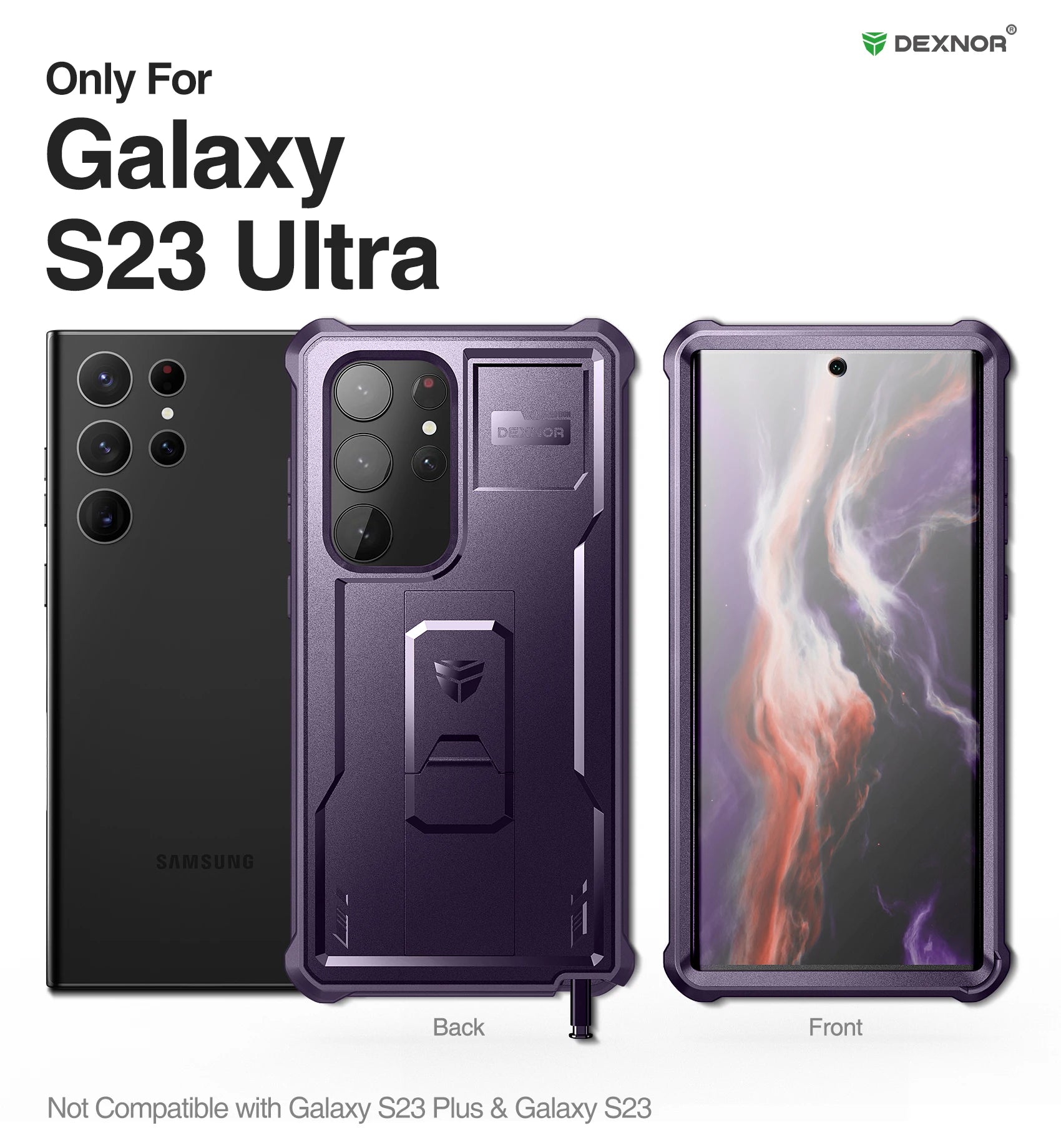 Introducing the Dexnor for Samsung Galaxy S23 Ultra Case—your ultimate solution for heavy-duty protection and functionality. Crafted with military-grade materials, this full-body case ensures that your smartphone remains safe from everyday drops, scratches, and dust.