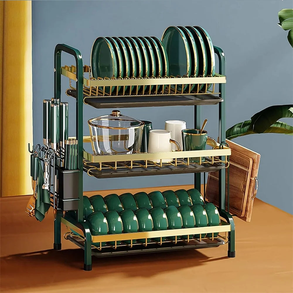 Dish Drying Rack 3 Tier Large Capacity Carbon Steel Multi Function Dish Rack for Kitchen Counter