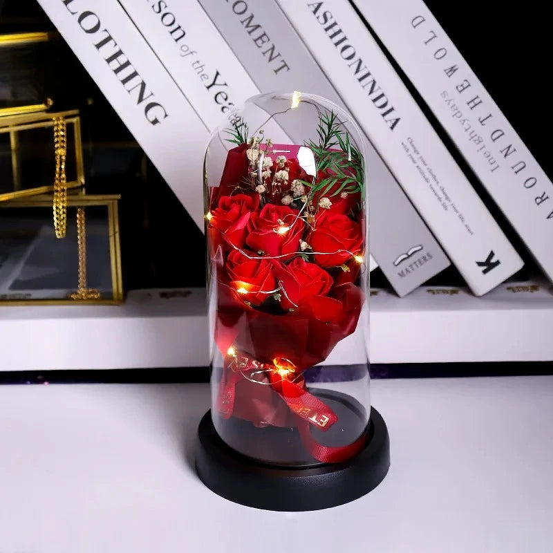 Everlasting Rose LED Glass Dome Bouquet Romantic Illuminated Ornament Perfect Valentine's Day Christmas Home Decor Romantic 2026