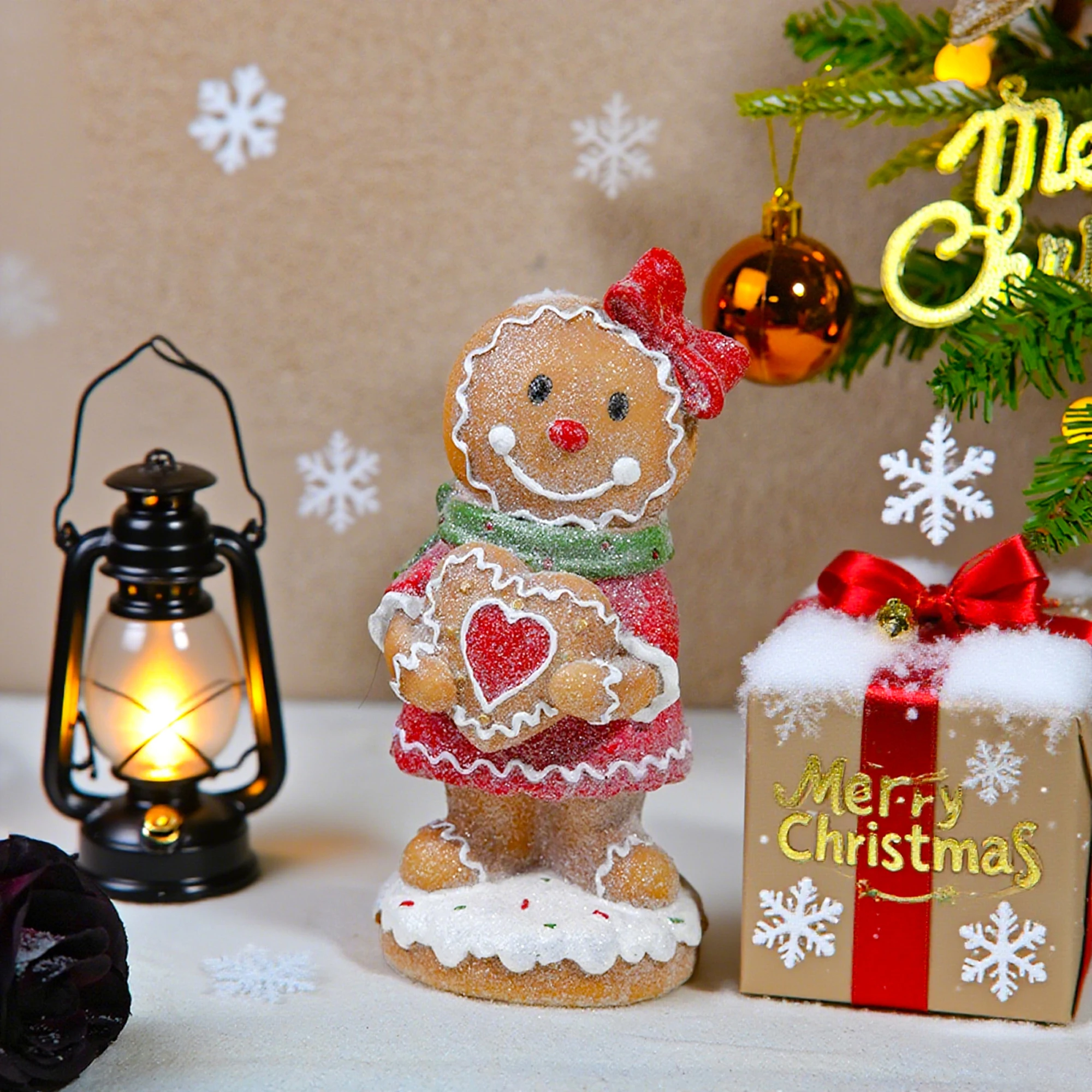 Christmas Figurine Cute Gingerbread Statue Tabletop Decor for Farmhouse Home Office Holiday PartySpecification: