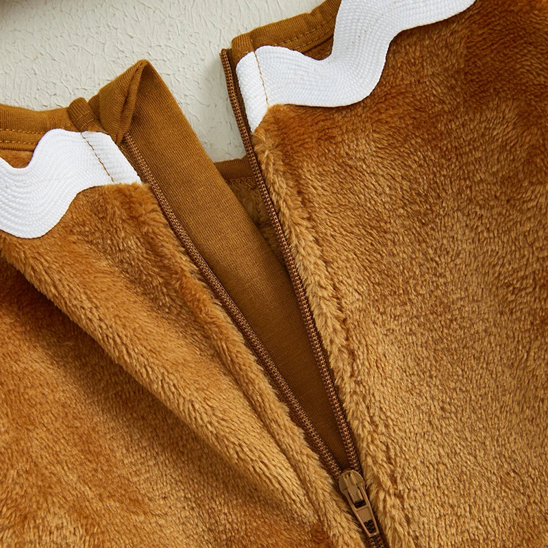 Baby Gingerbread Costume Outfit, Ric Rac Trim Fleece Long Sleeve Jumpsuit Hat Gloves for Christmas Halloween PartySize (cm)