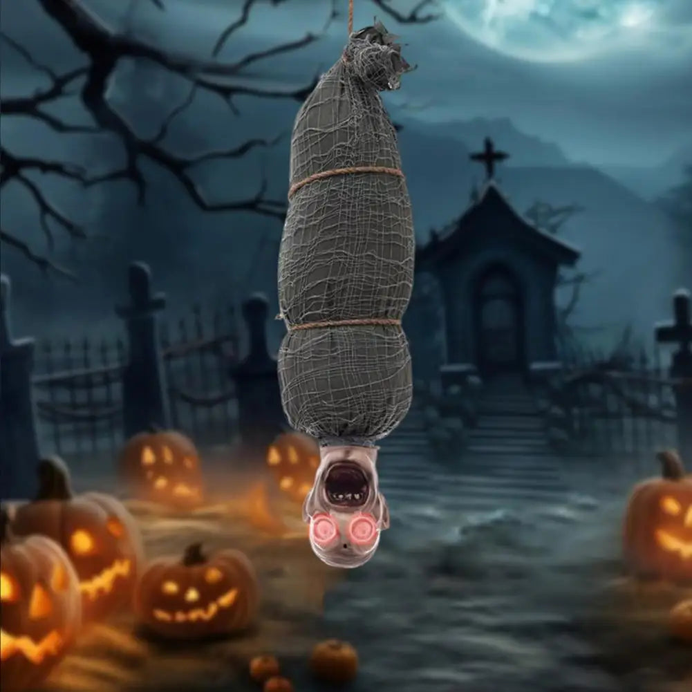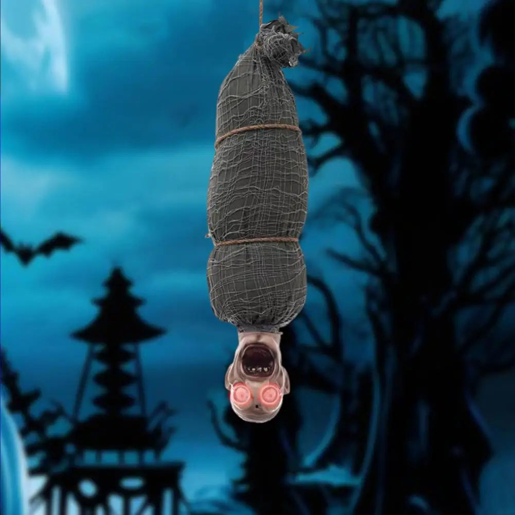 As a standout piece in the category of Halloween decorations, this hanging corpse figurine is not just a basic prop; it’s a statement piece that enhances your haunted decor. Unlike typical decorations, our corpse features intricate detailing and a unique glow that is bound to leave an impression.