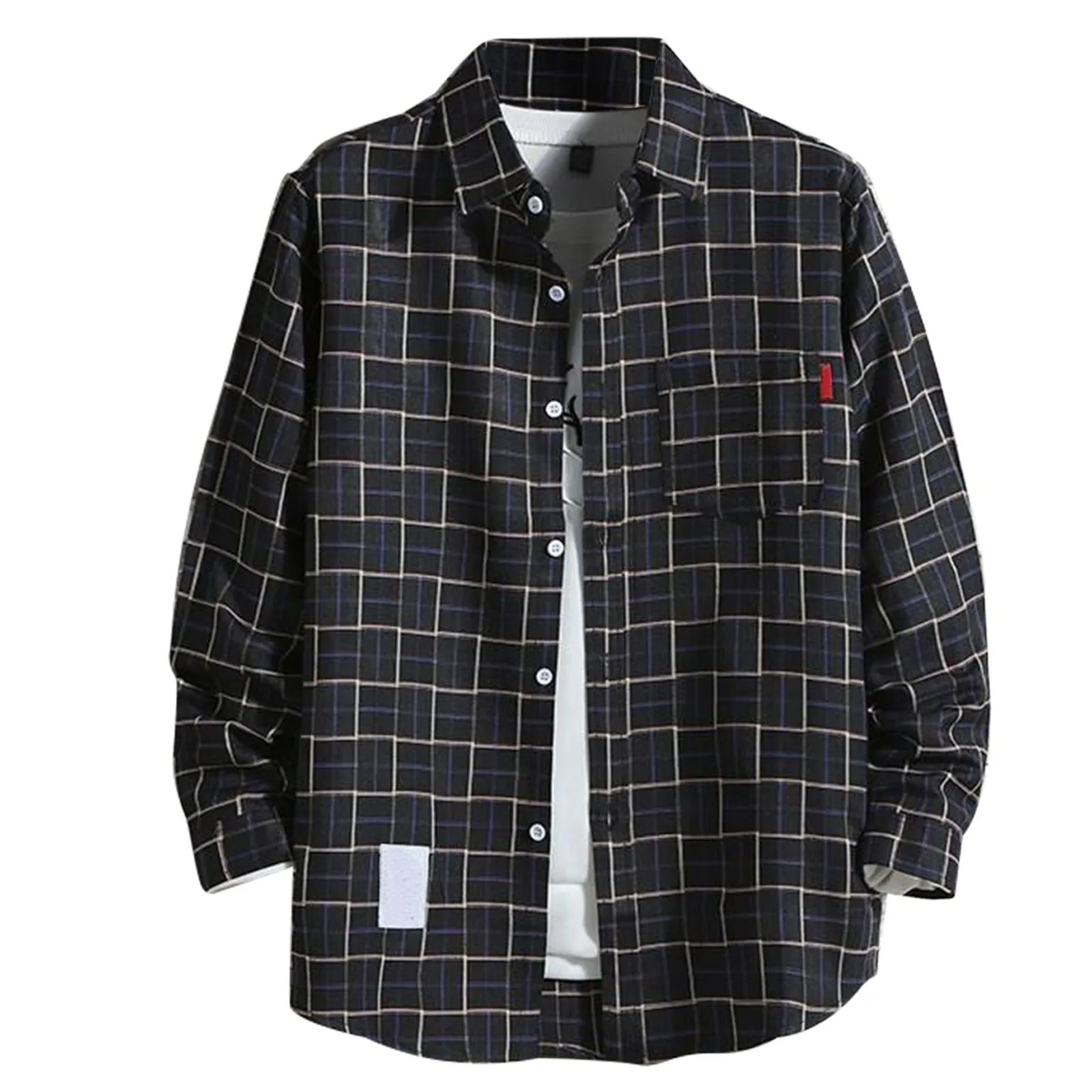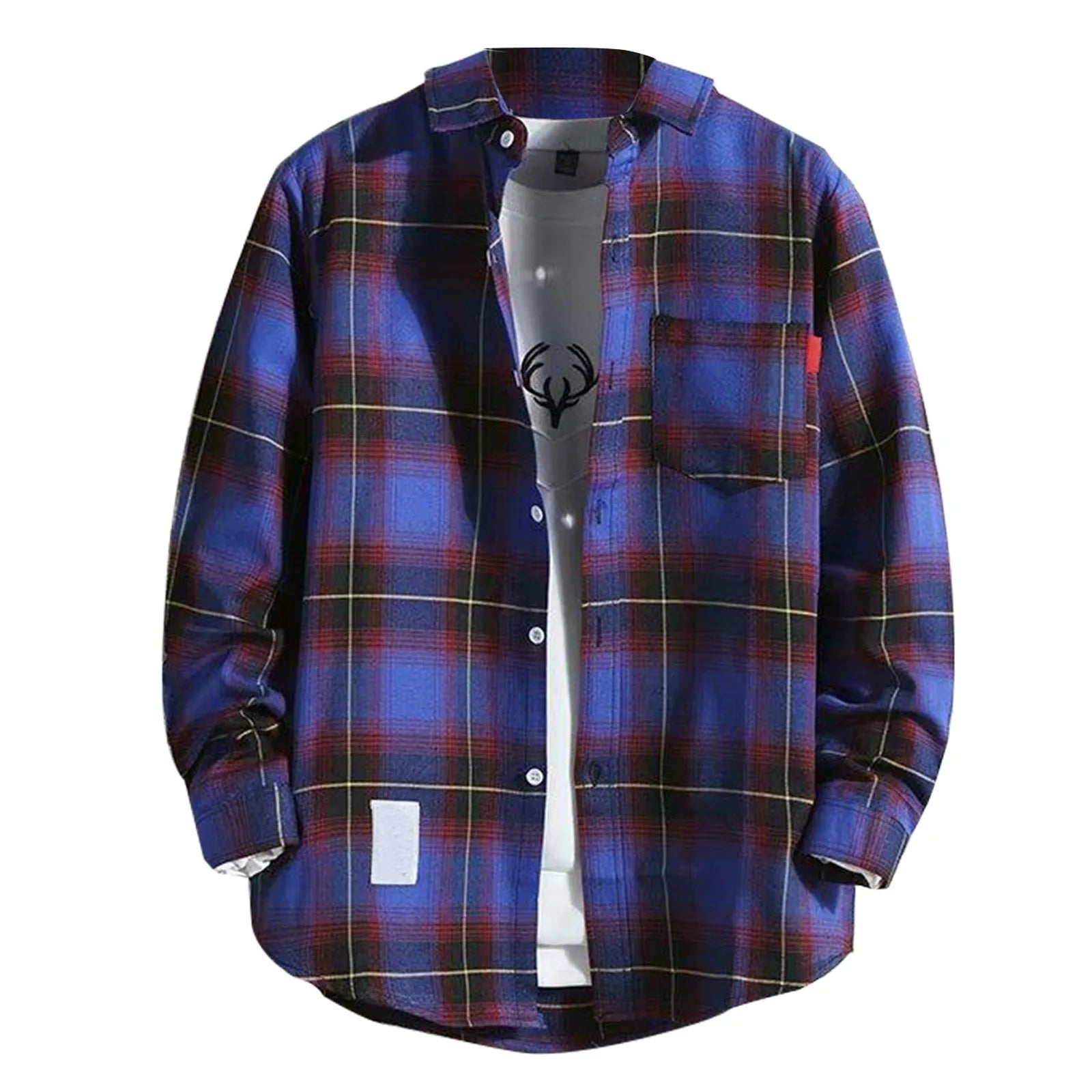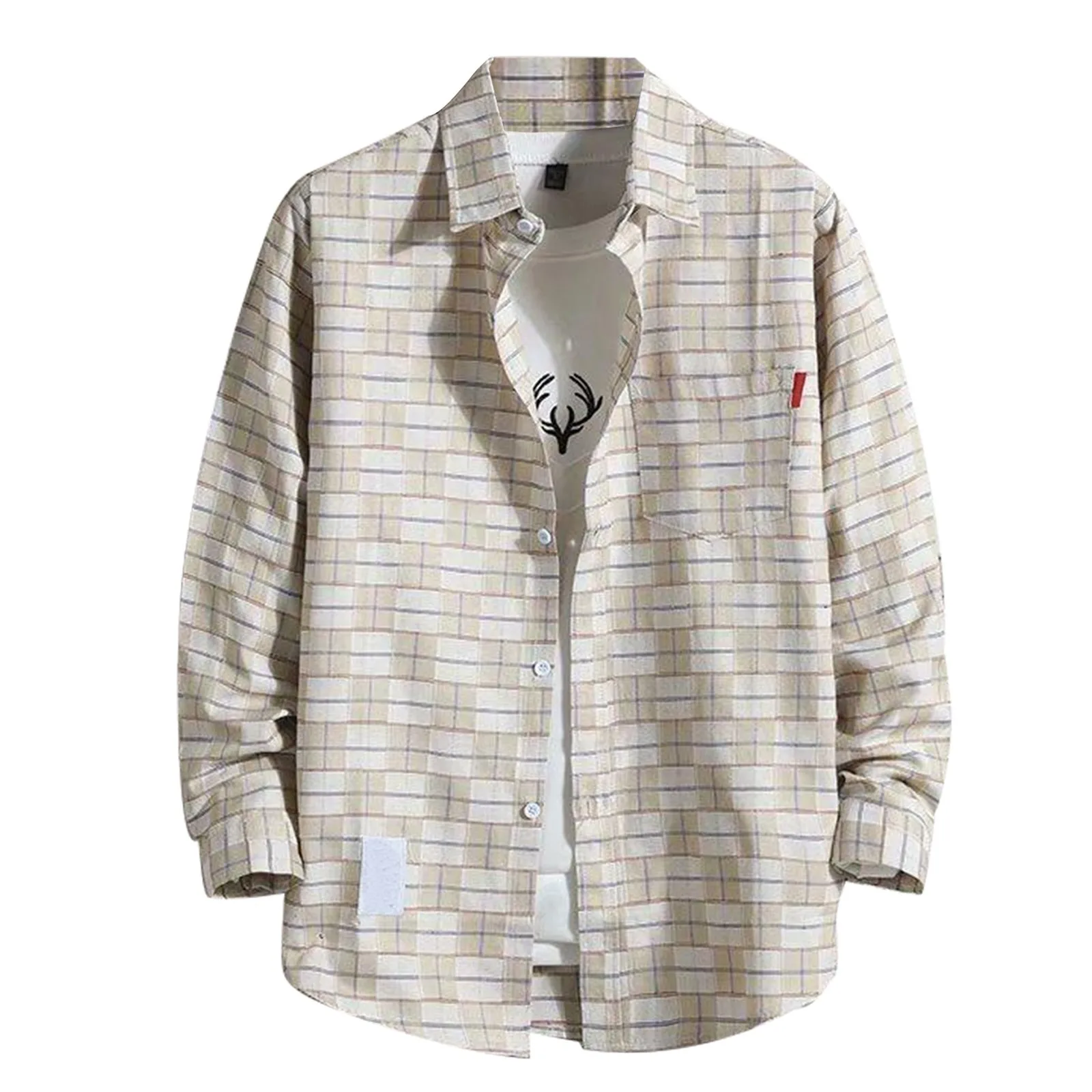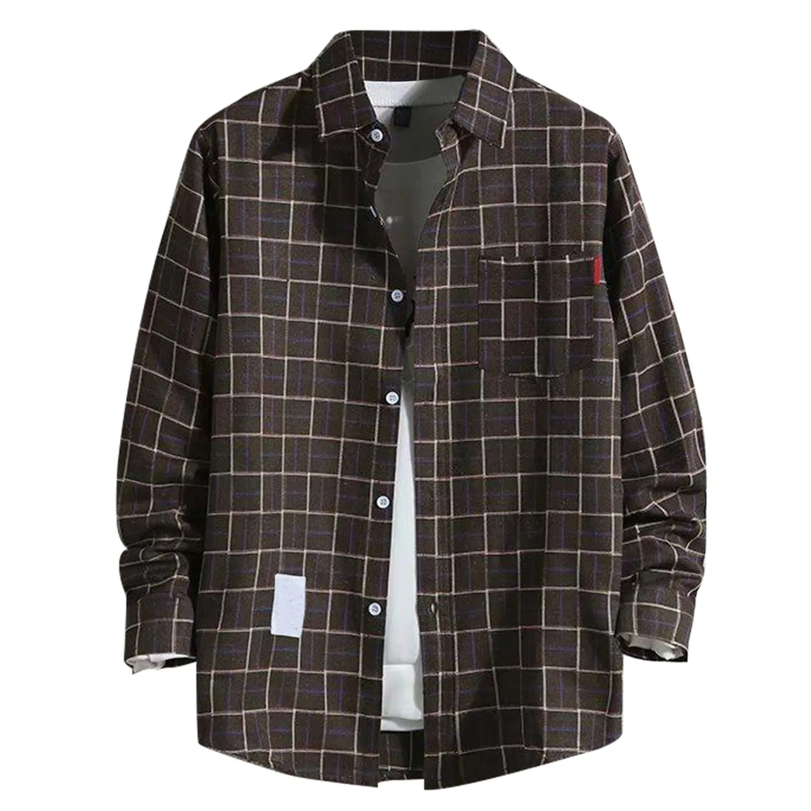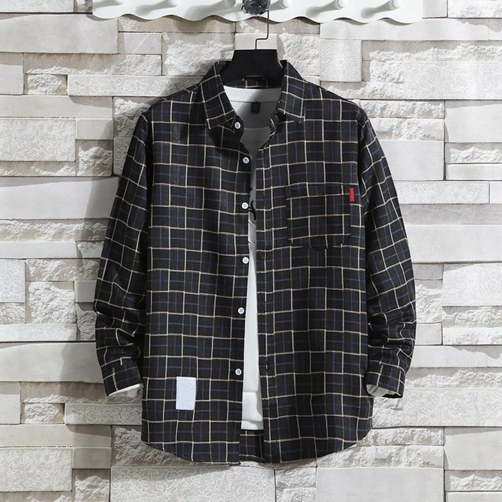 Men's Blouses Lapel Shirt Long Sleeve Plaid T-shirts Loose Shirt With A Coat Button Down Casual Shirts Plus Size Fashion Tops