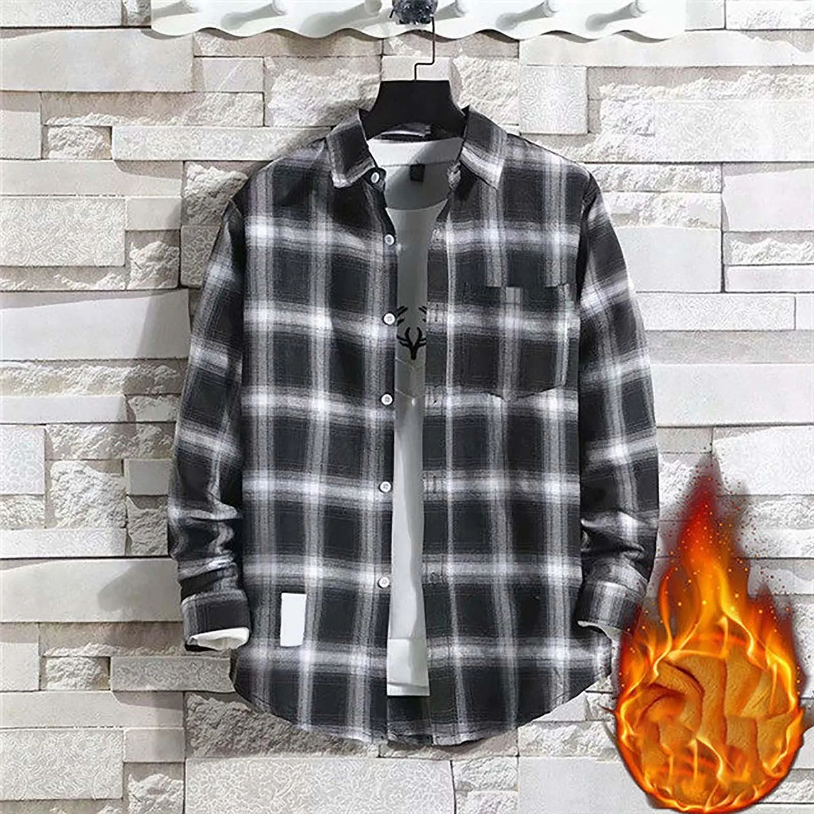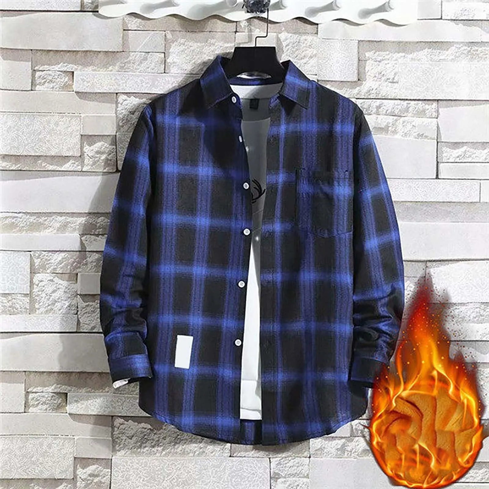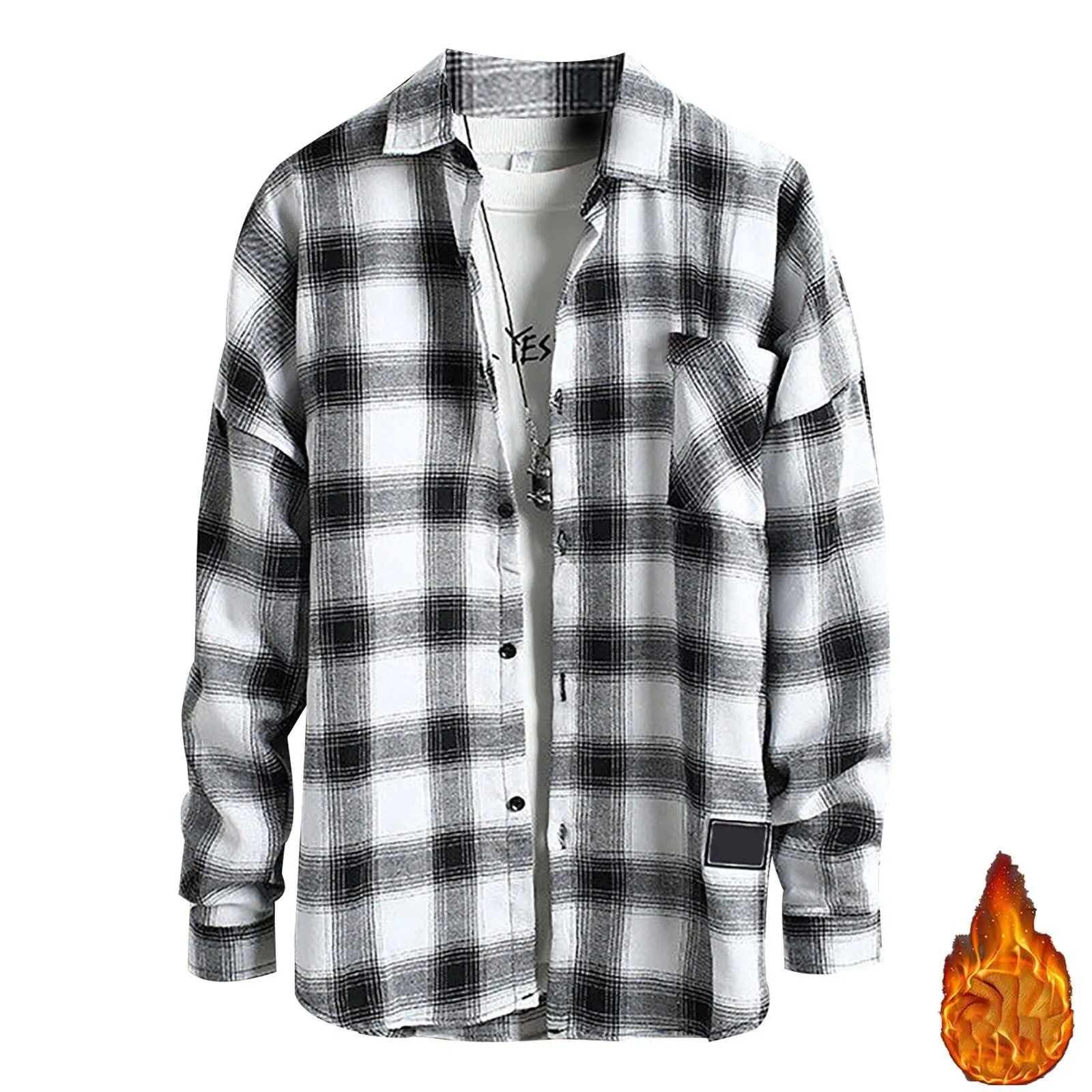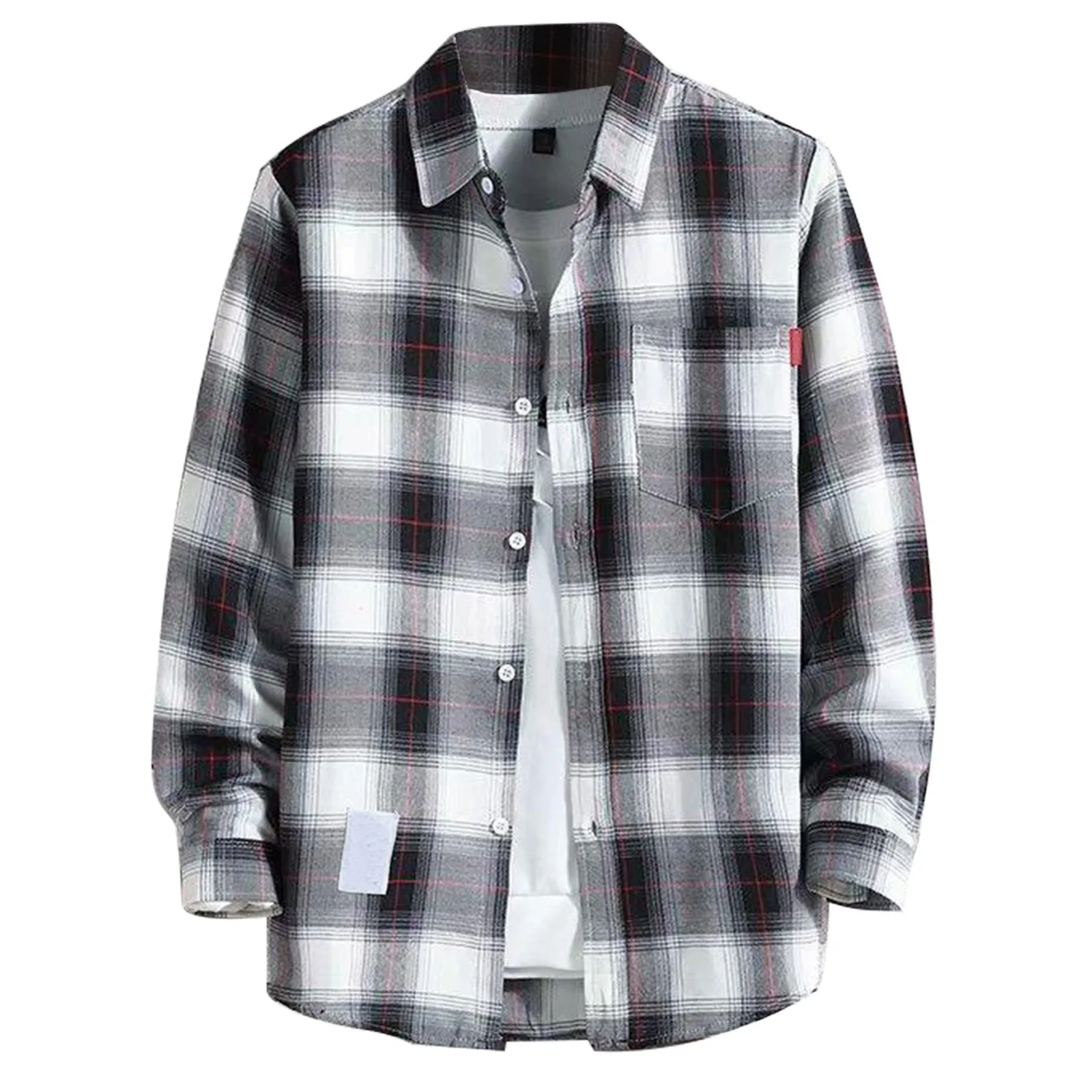 Men's Blouses Lapel Shirt Long Sleeve Plaid T-shirts Loose Shirt With A Coat Button Down Casual Shirts Plus Size Fashion Tops