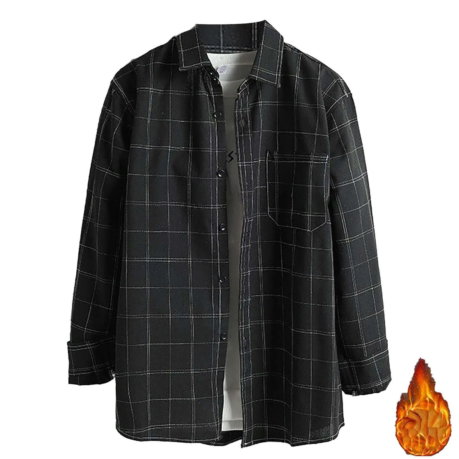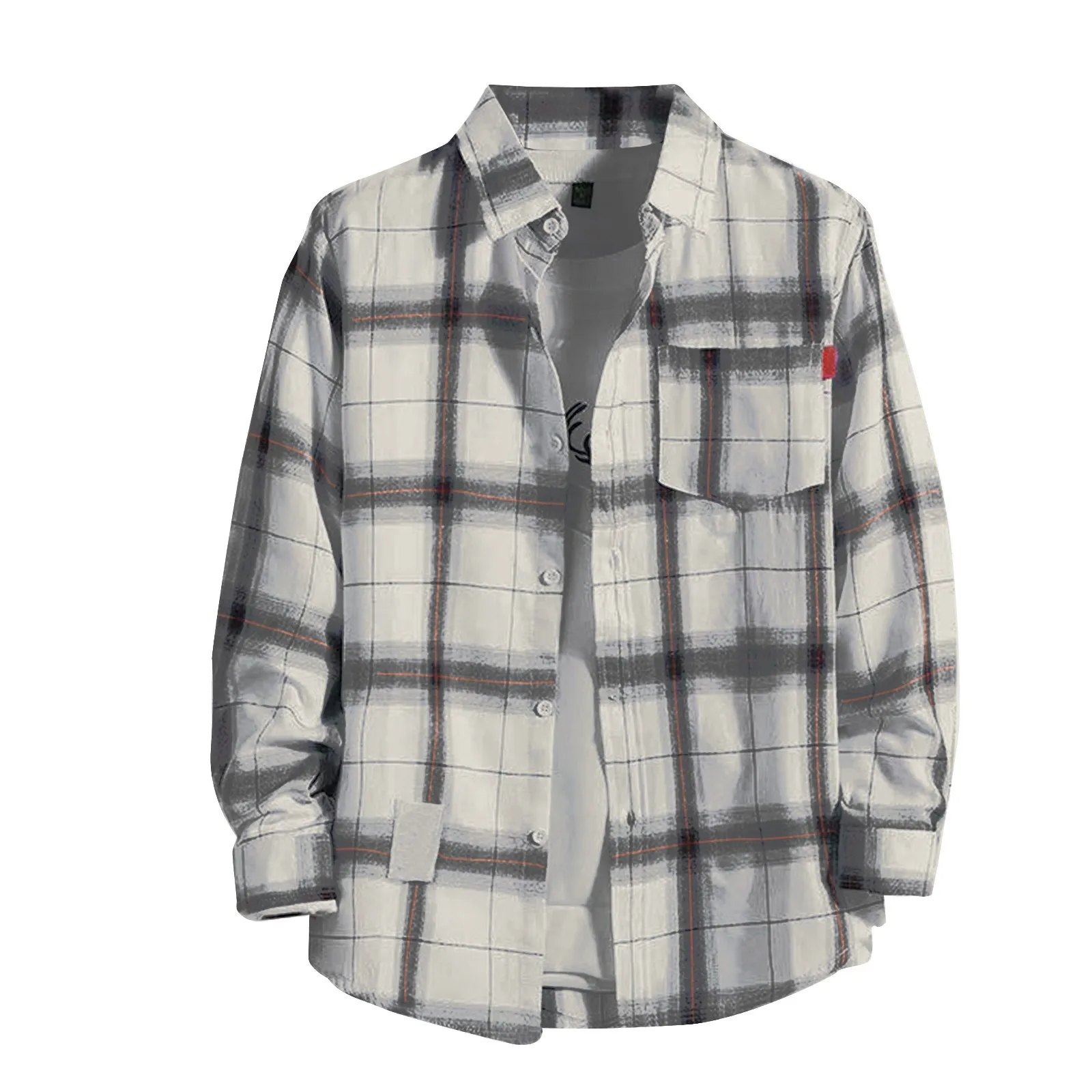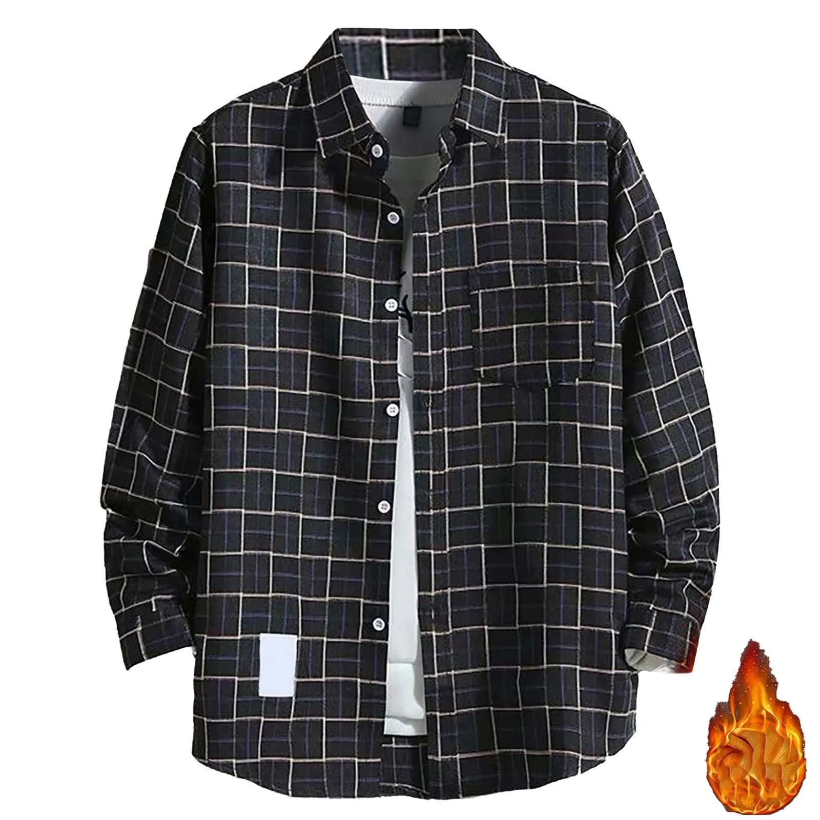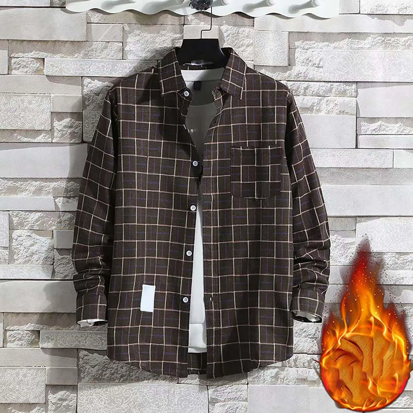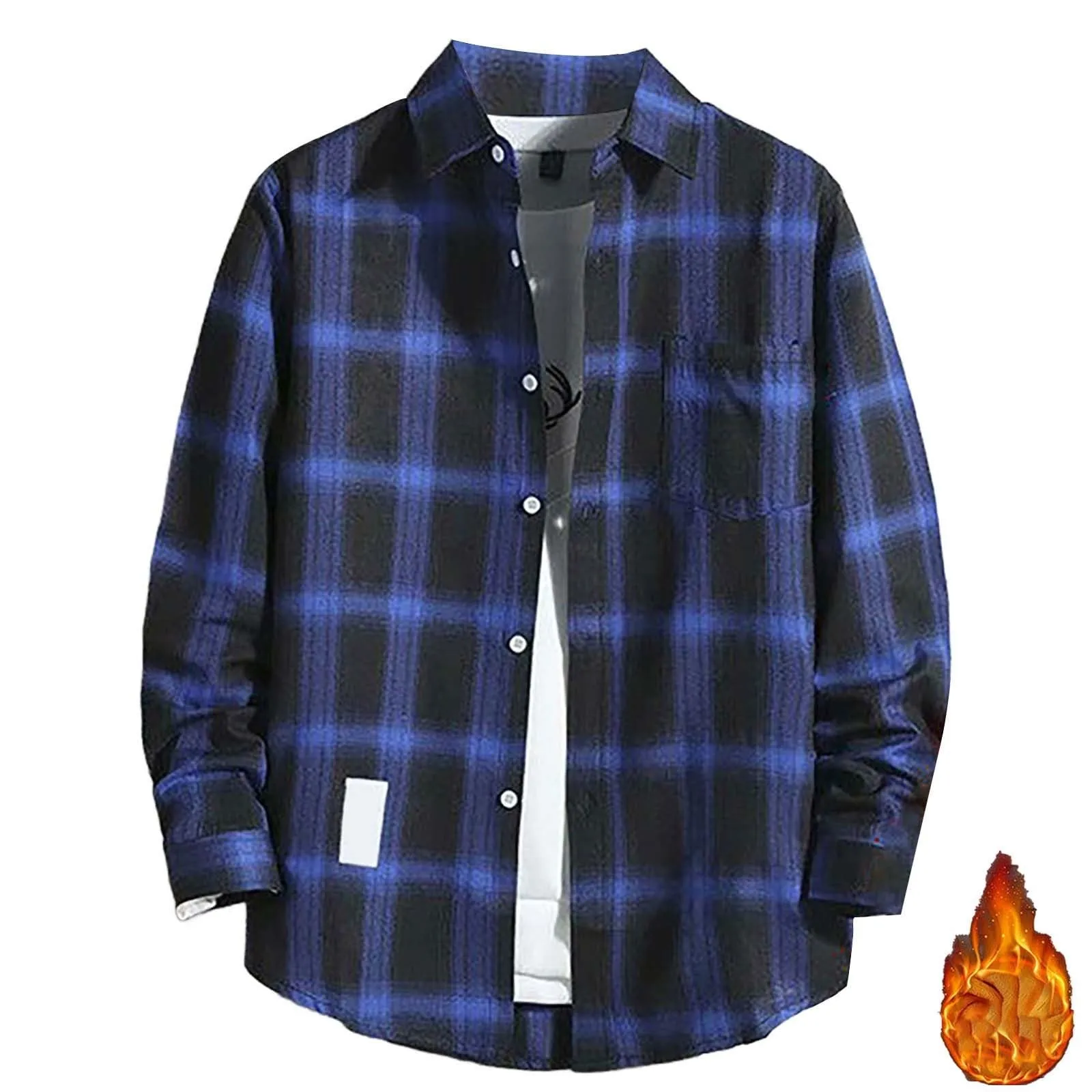 Men's Blouses Lapel Shirt Long Sleeve Plaid T-shirts Loose Shirt With A Coat Button Down Casual Shirts Plus Size Fashion Tops