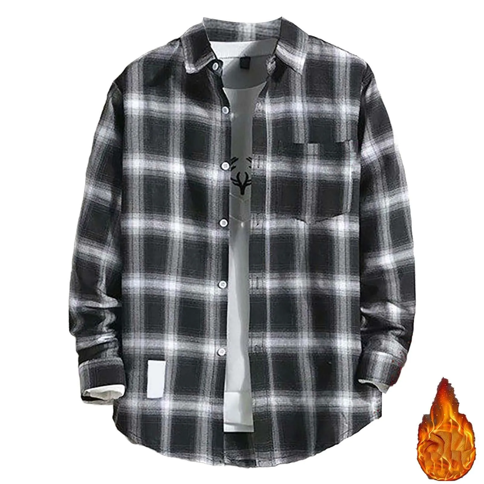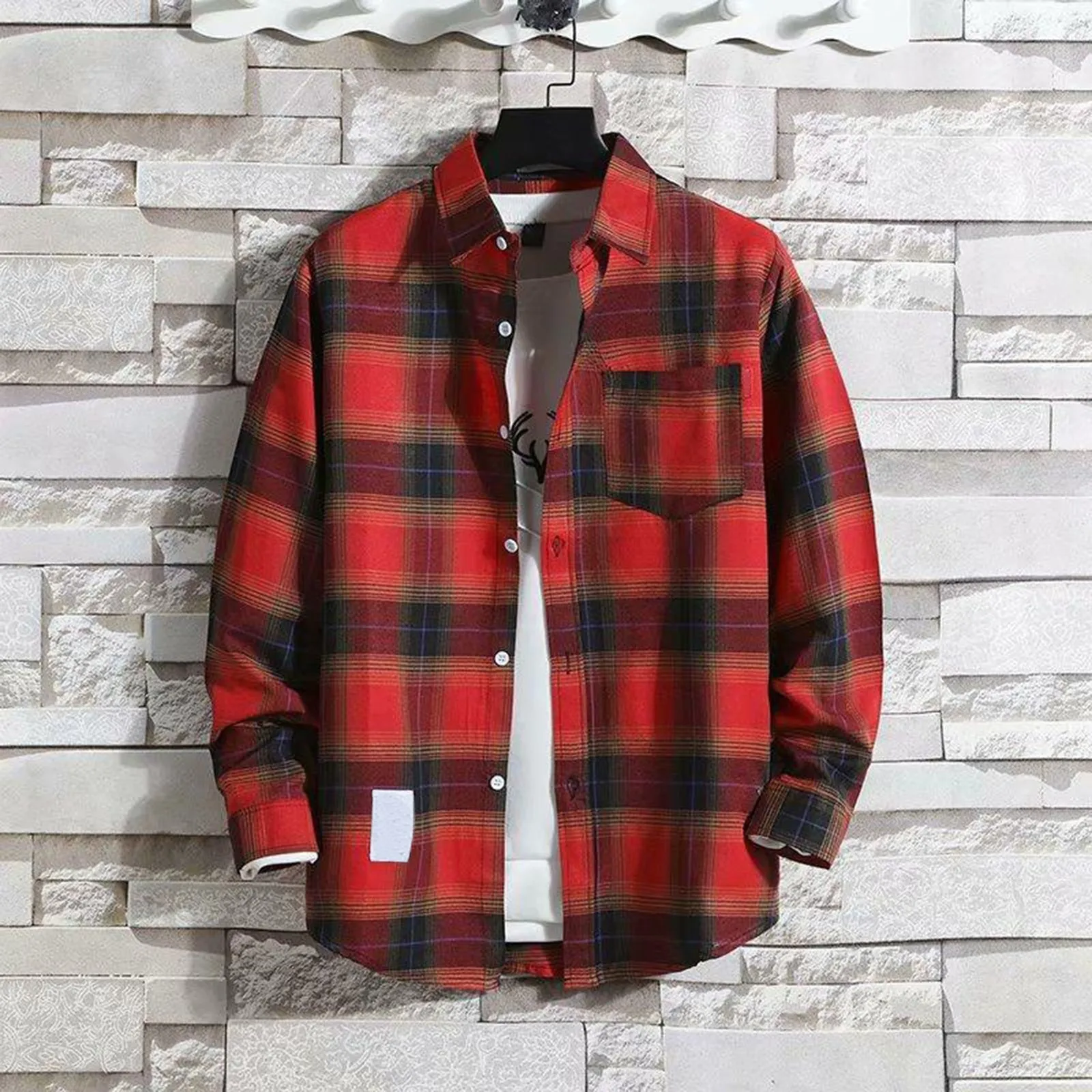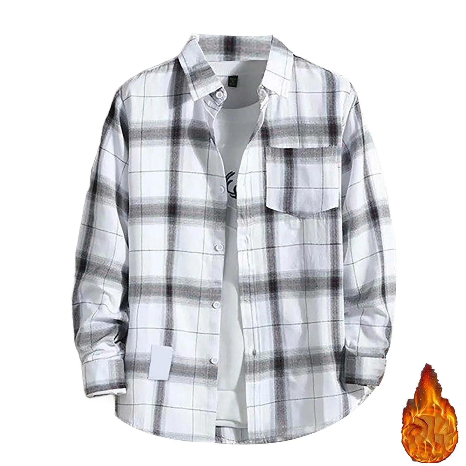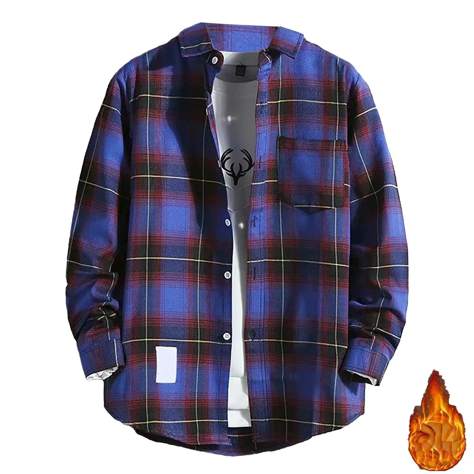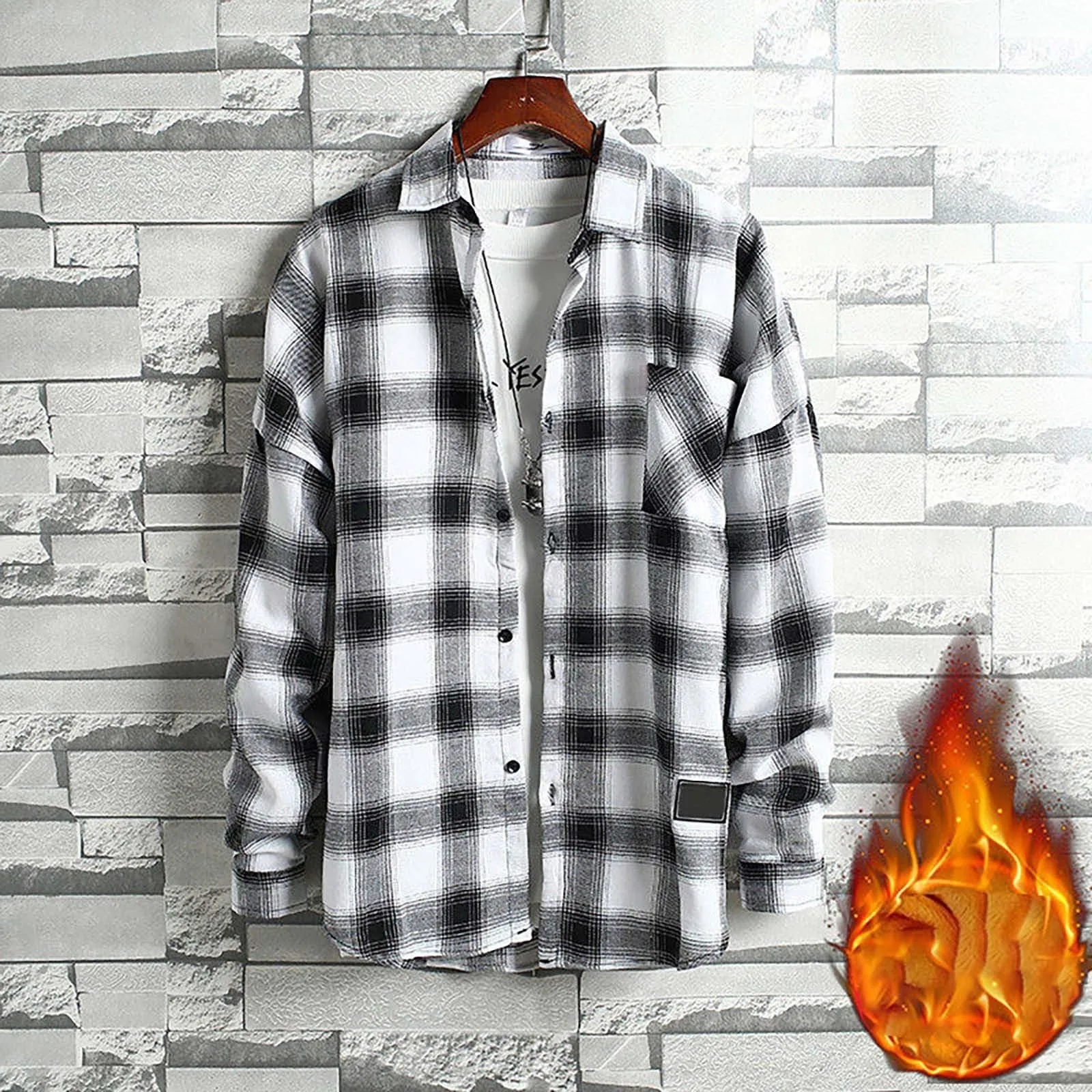 Men's Blouses Lapel Shirt Long Sleeve Plaid T-shirts Loose Shirt With A Coat Button Down Casual Shirts Plus Size Fashion Tops