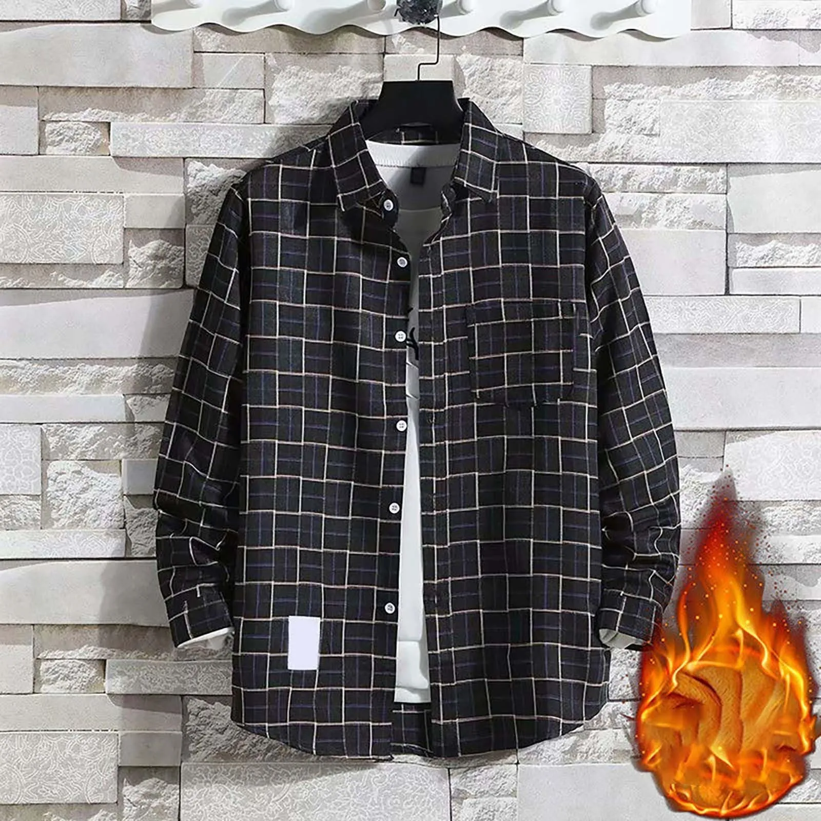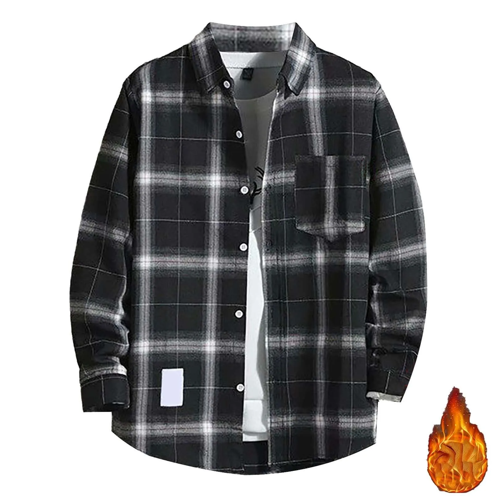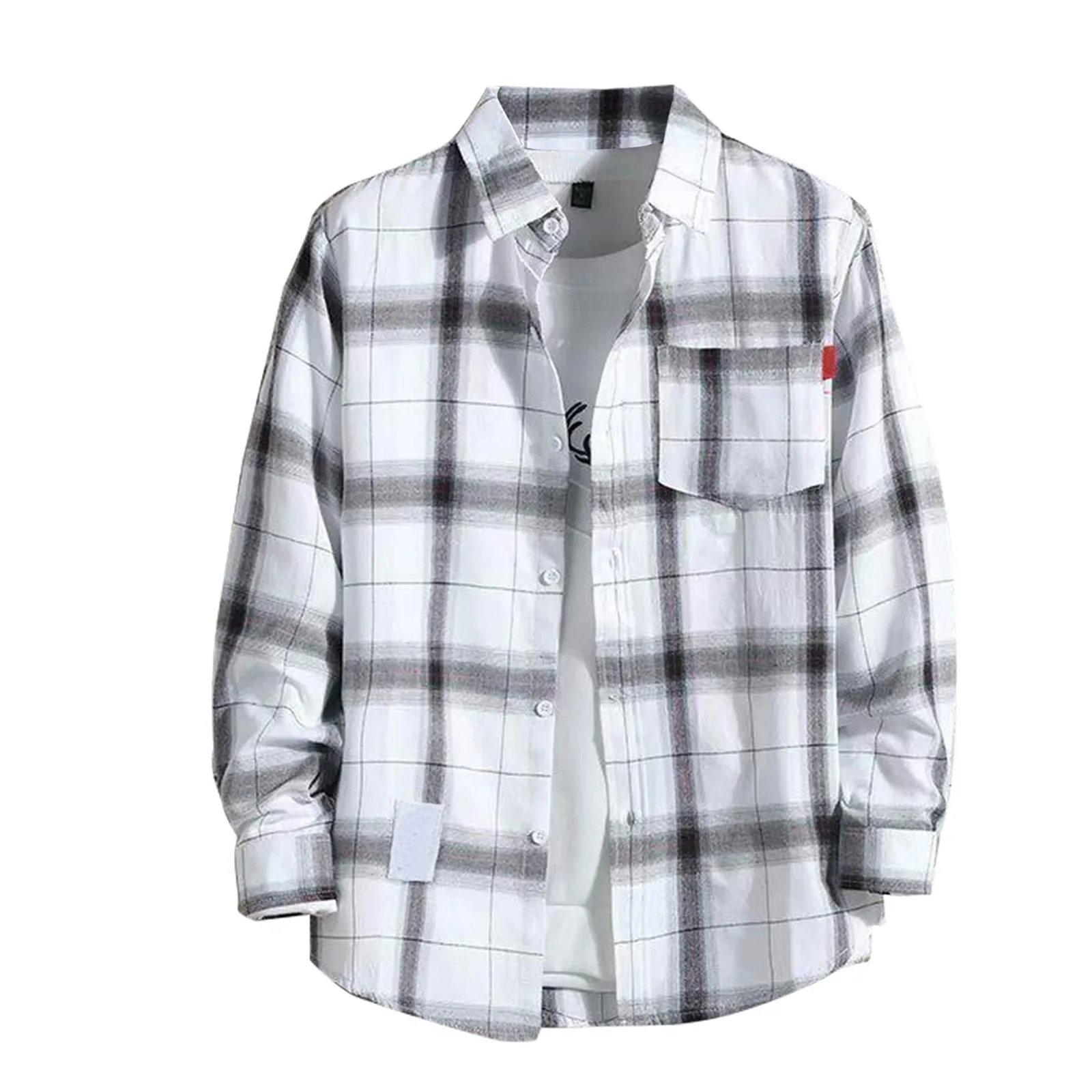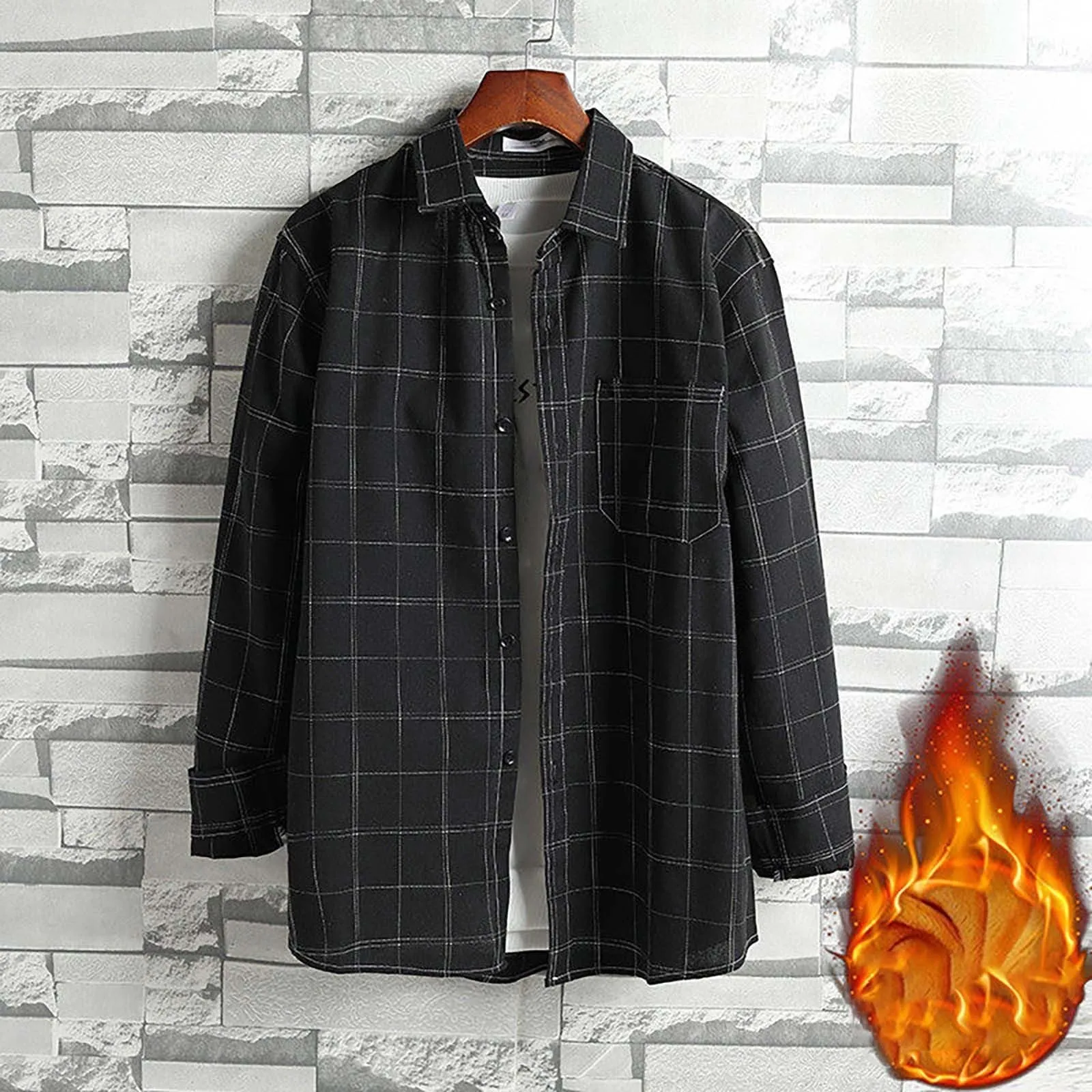 Men's Blouses Lapel Shirt Long Sleeve Plaid T-shirts Loose Shirt With A Coat Button Down Casual Shirts Plus Size Fashion Tops