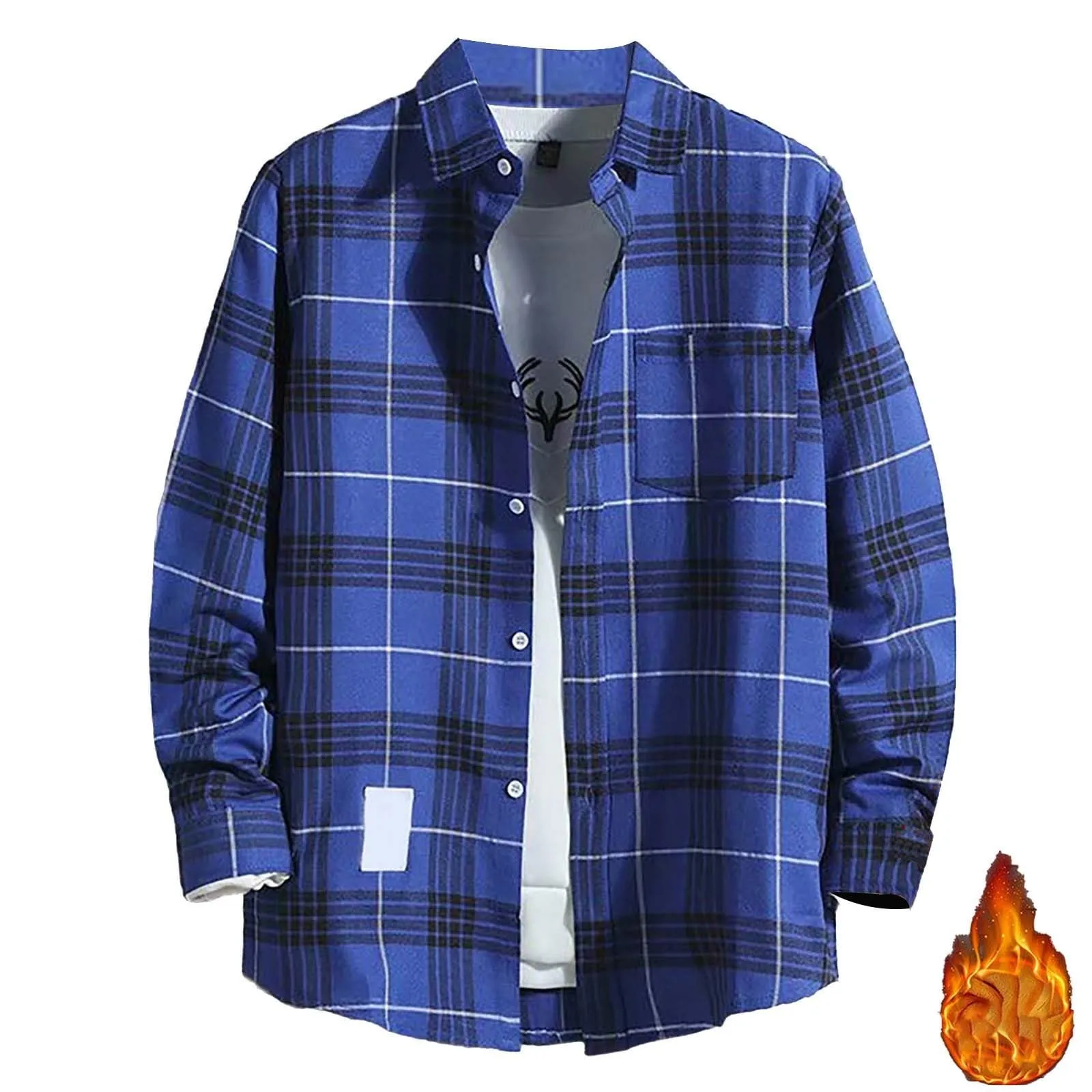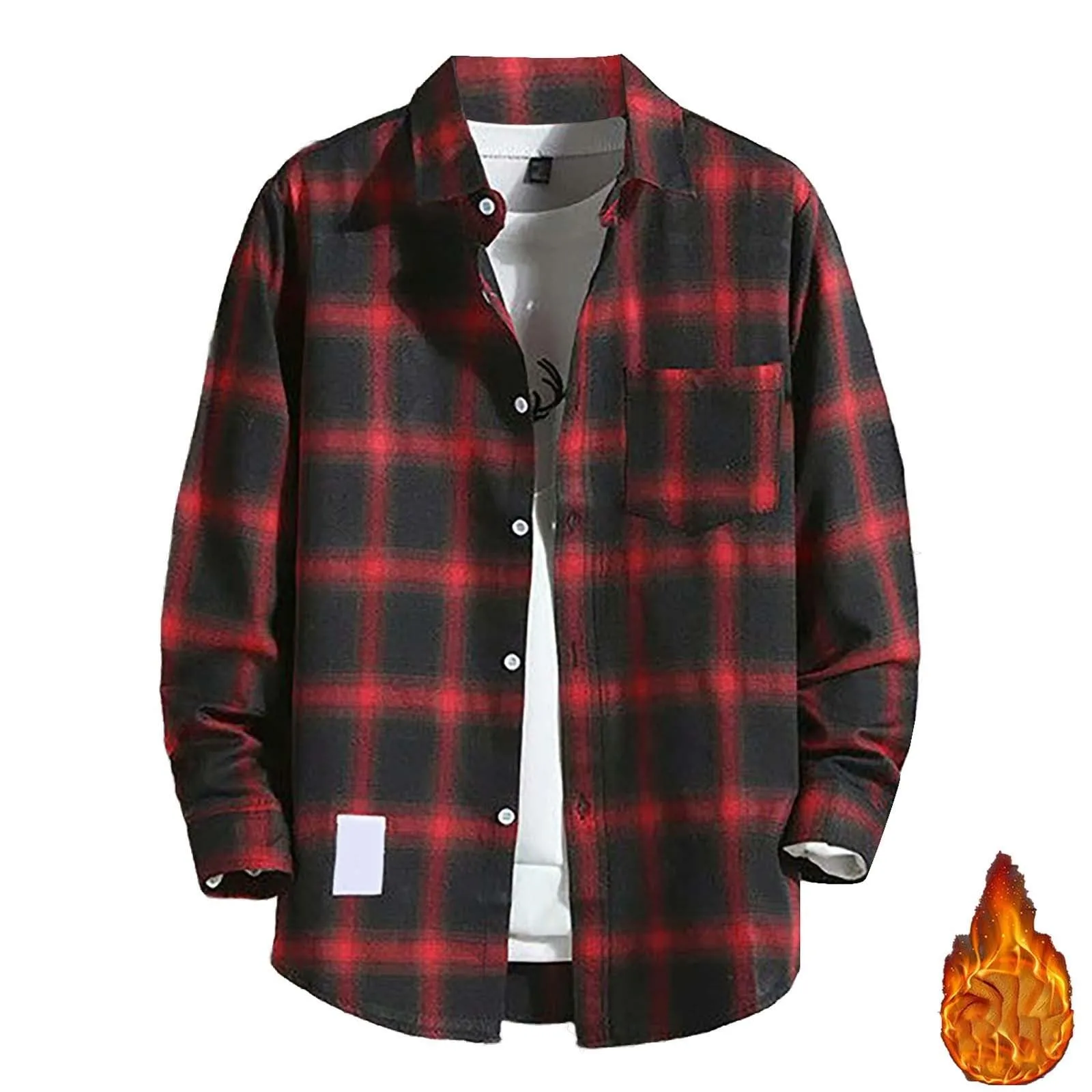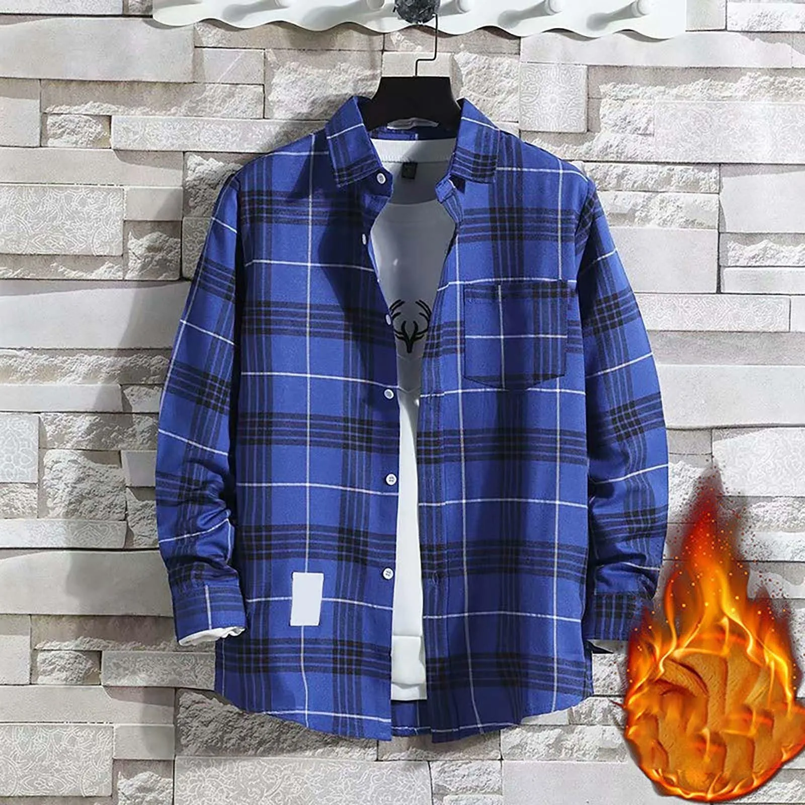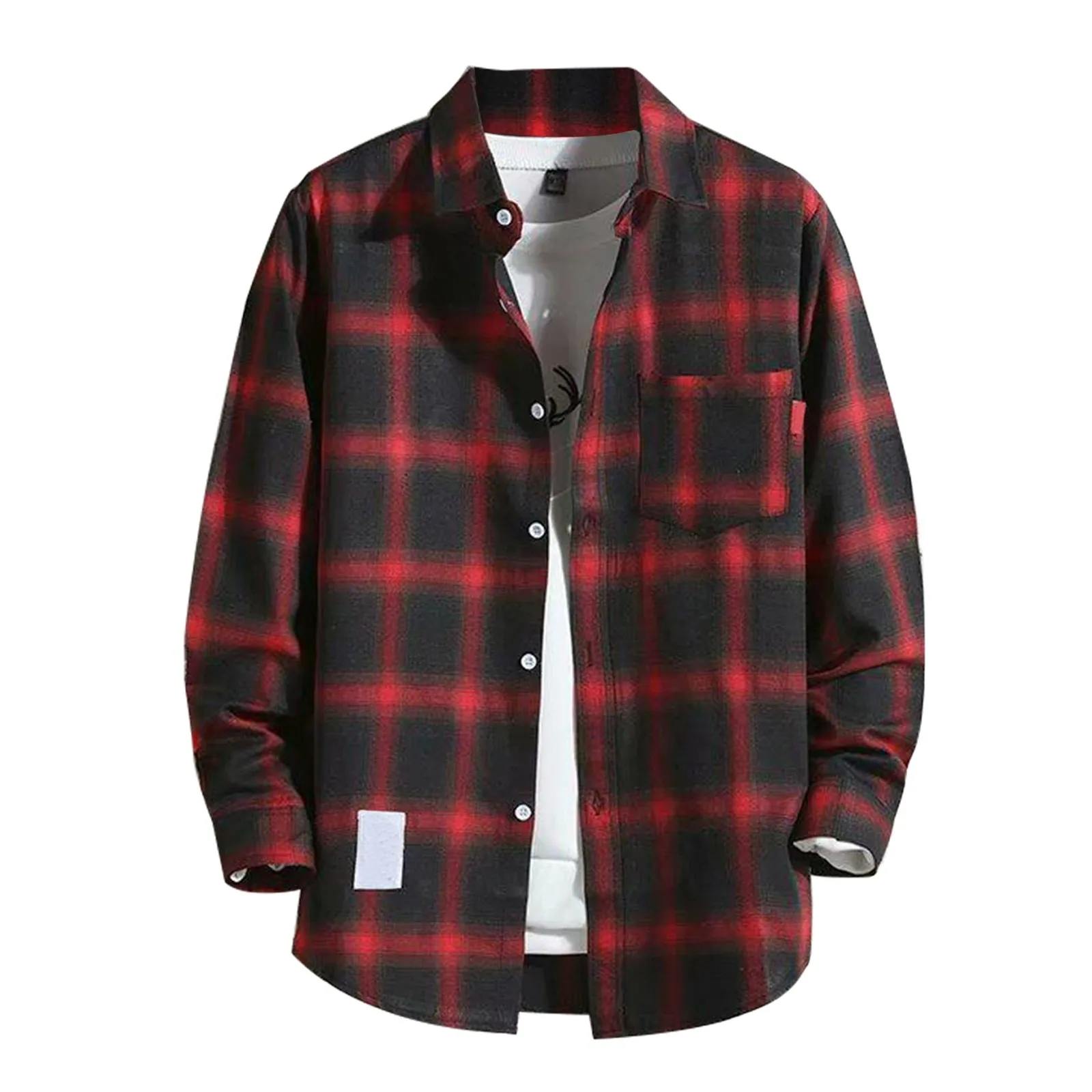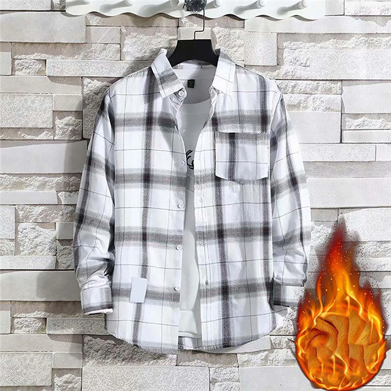 Men's Blouses Lapel Shirt Long Sleeve Plaid T-shirts Loose Shirt With A Coat Button Down Casual Shirts Plus Size Fashion Tops
