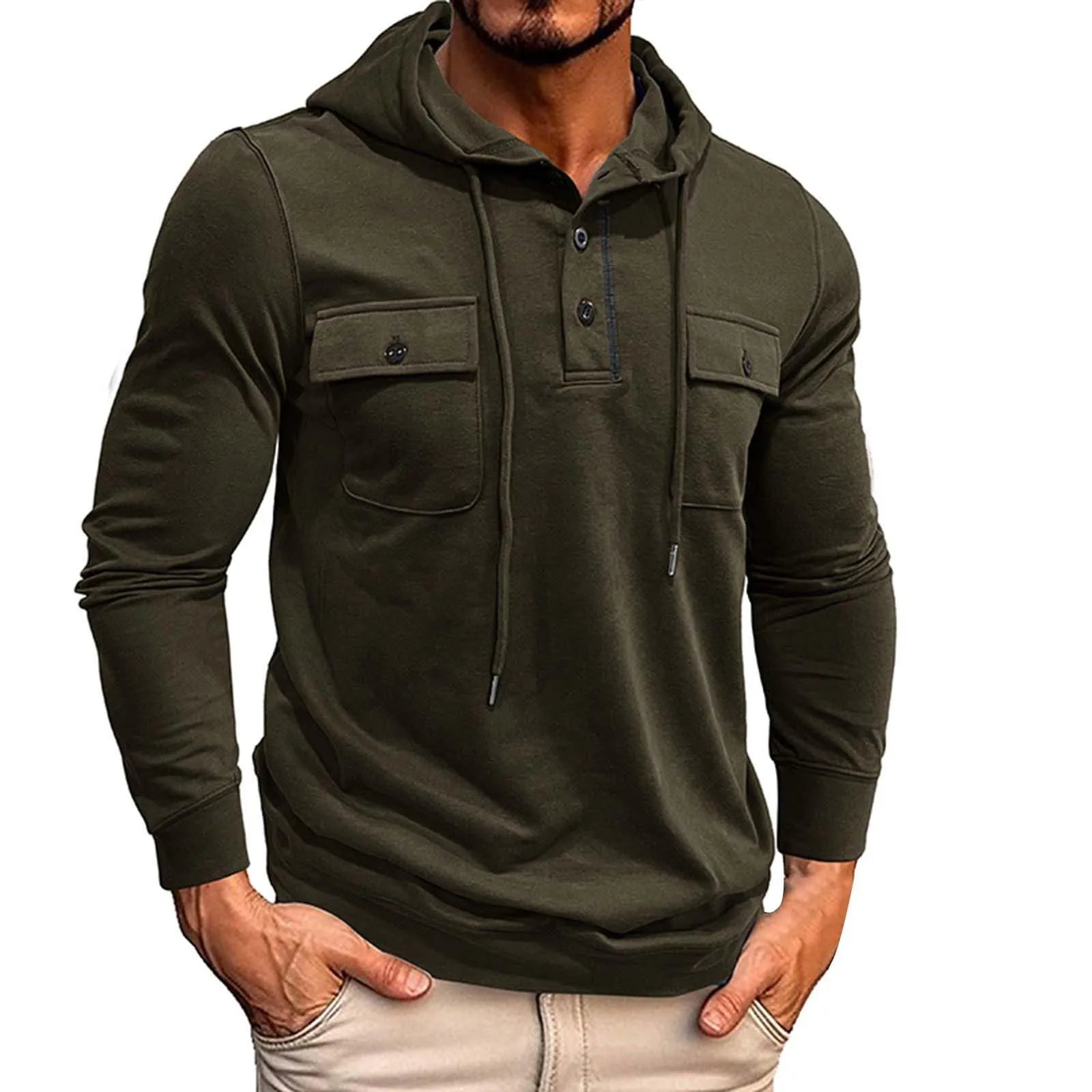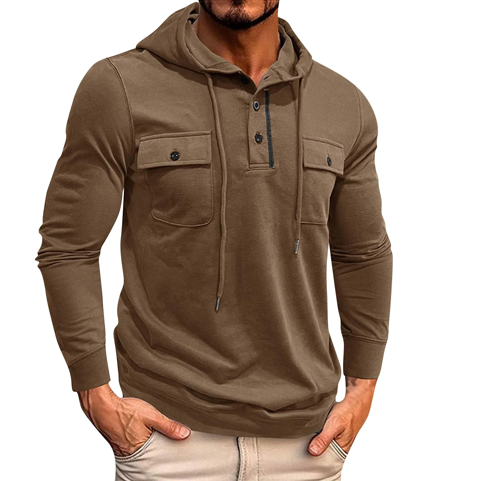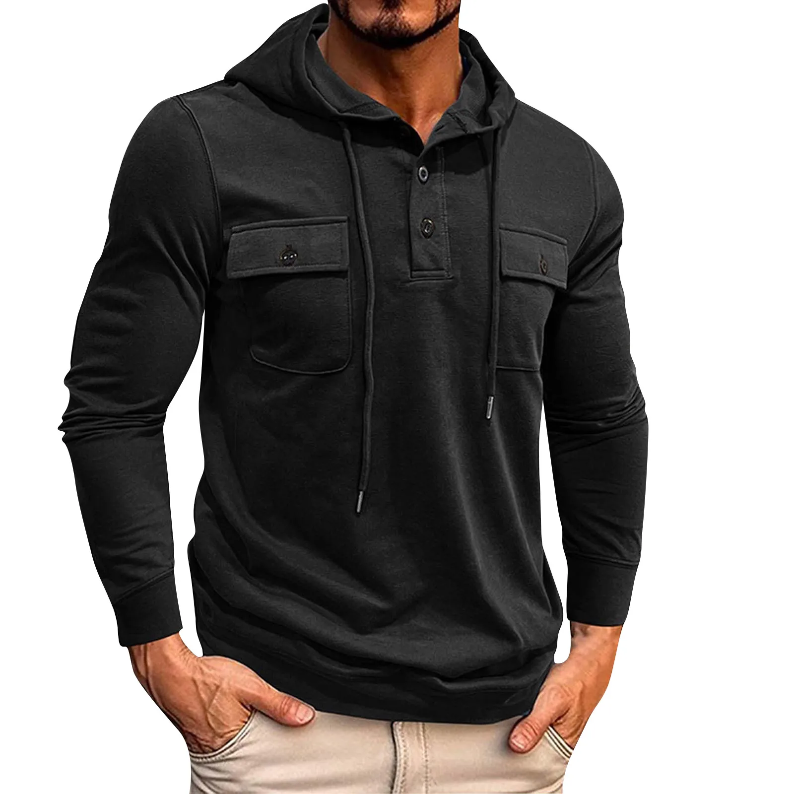 Men Casual Patchwork Pockets Hoodie Streetwear Mens Hoodies 2024 Fall Fashionable Solid Color Long Sleeve Hooded Sweatshirts For