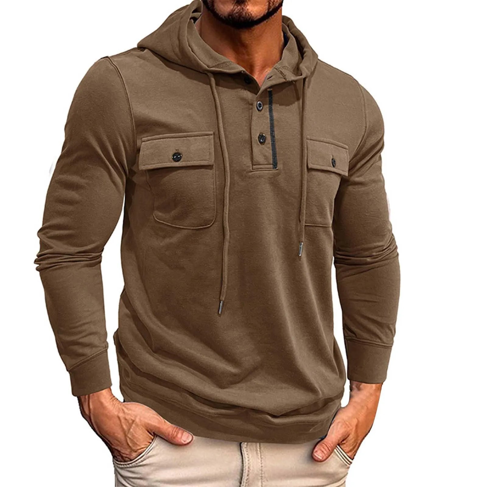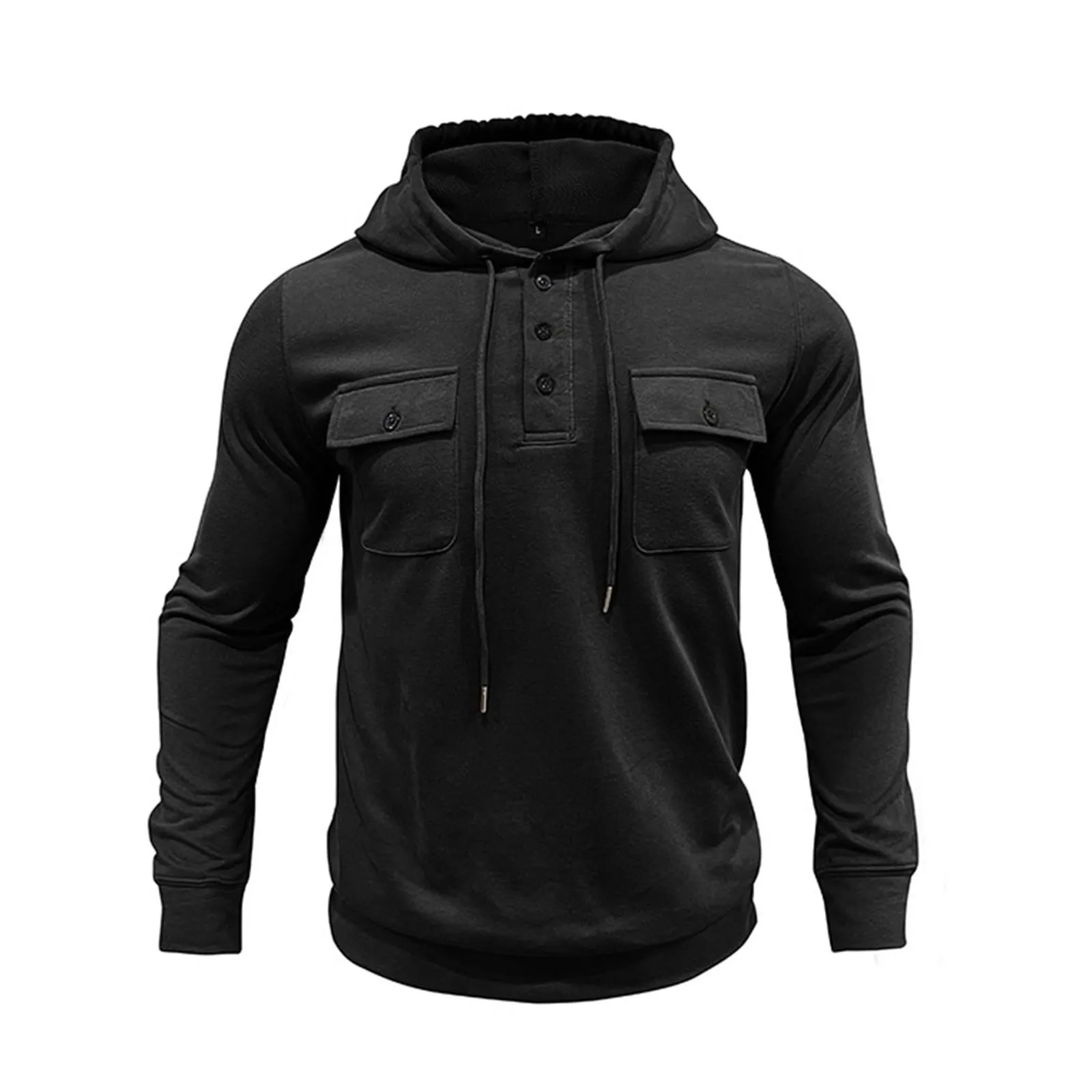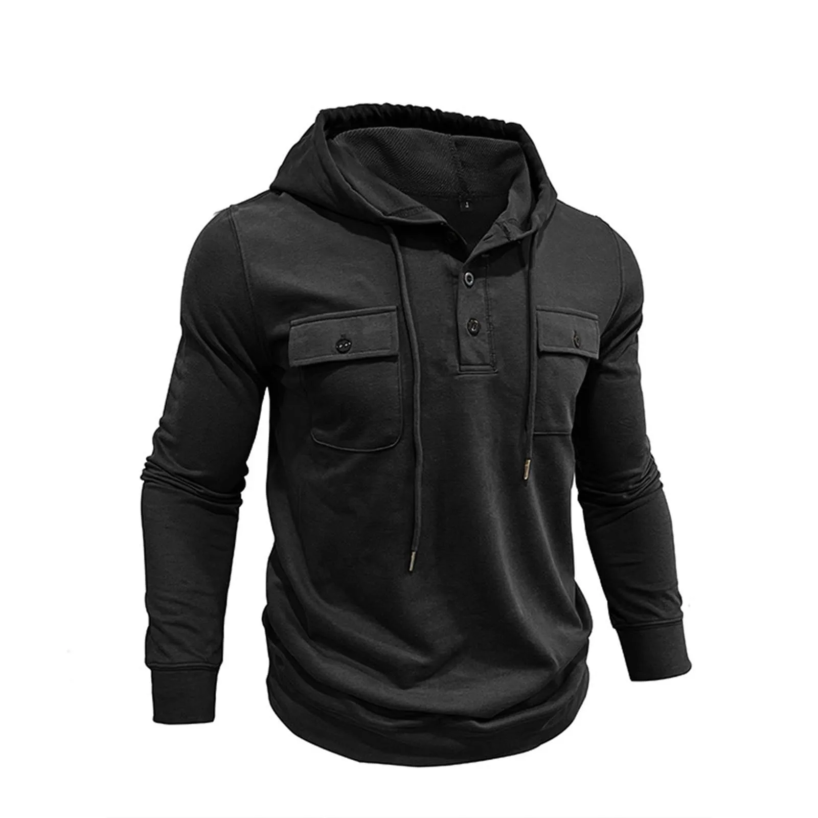 Men Casual Patchwork Pockets Hoodie Streetwear Mens Hoodies 2024 Fall Fashionable Solid Color Long Sleeve Hooded Sweatshirts For
