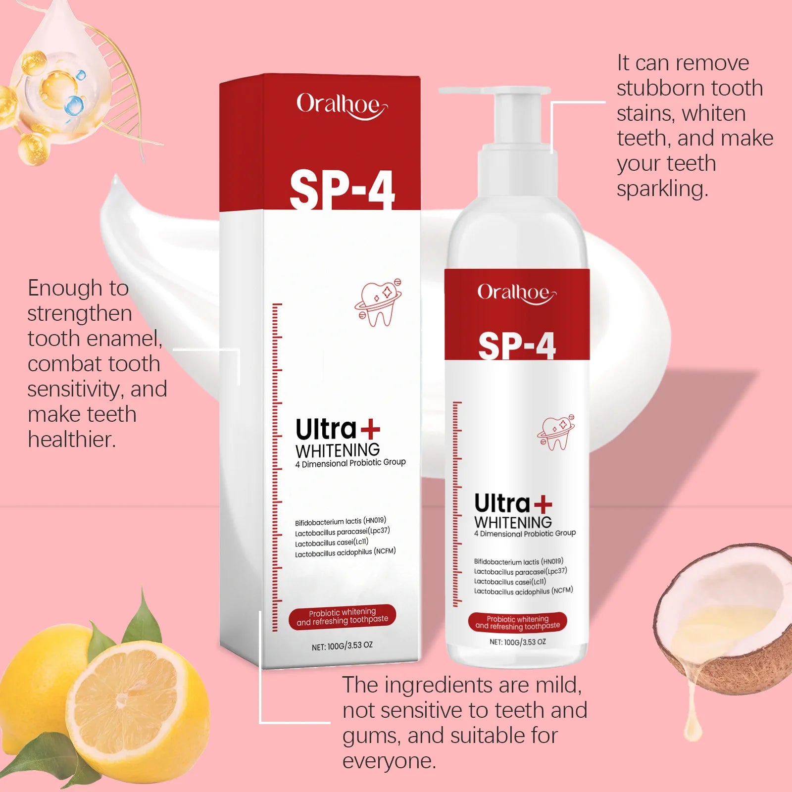 Oralhoe 100g Probiotic Whitening Toothpaste for Fresh Breath and Plaque Removal