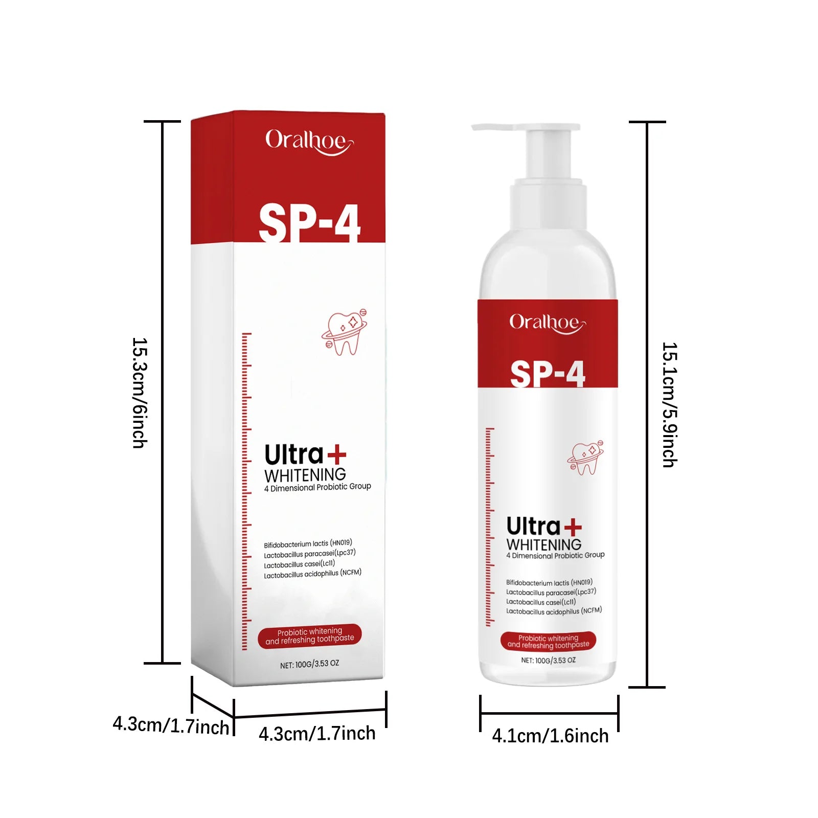 Oralhoe 100g SP4 Probiotic Brightening Toothpaste for Oral Hygiene Fresh Breath and Plaque Stain Removal