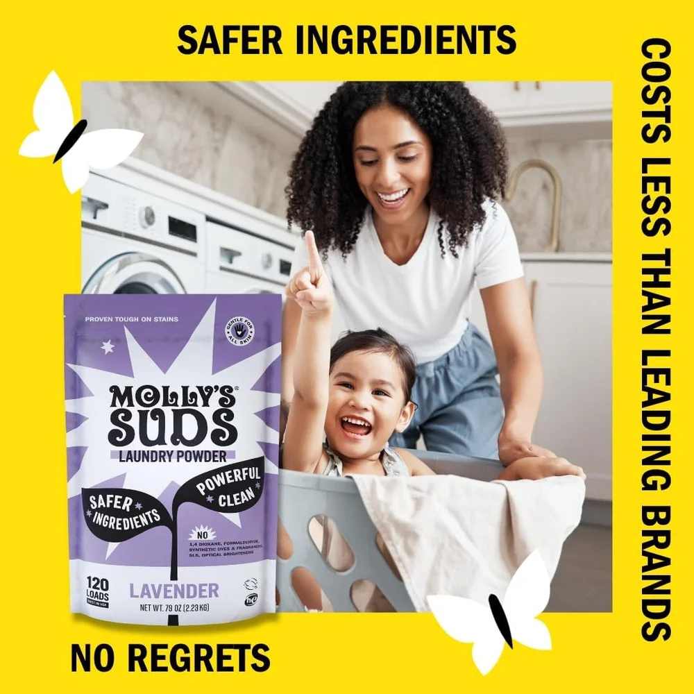 WHAT'S INCLUDED: One 79 oz bags of Laundry Powder with one measuring scoop. Our cost-effective detergent is capable of deep cleaning 120 loads of laundry. Free of harsh synthetic fragrances, dyes, and other harmful additives. Dissolve 1 measuring scoop in warm or hot water for each load of laundry to power through dirt and grime.