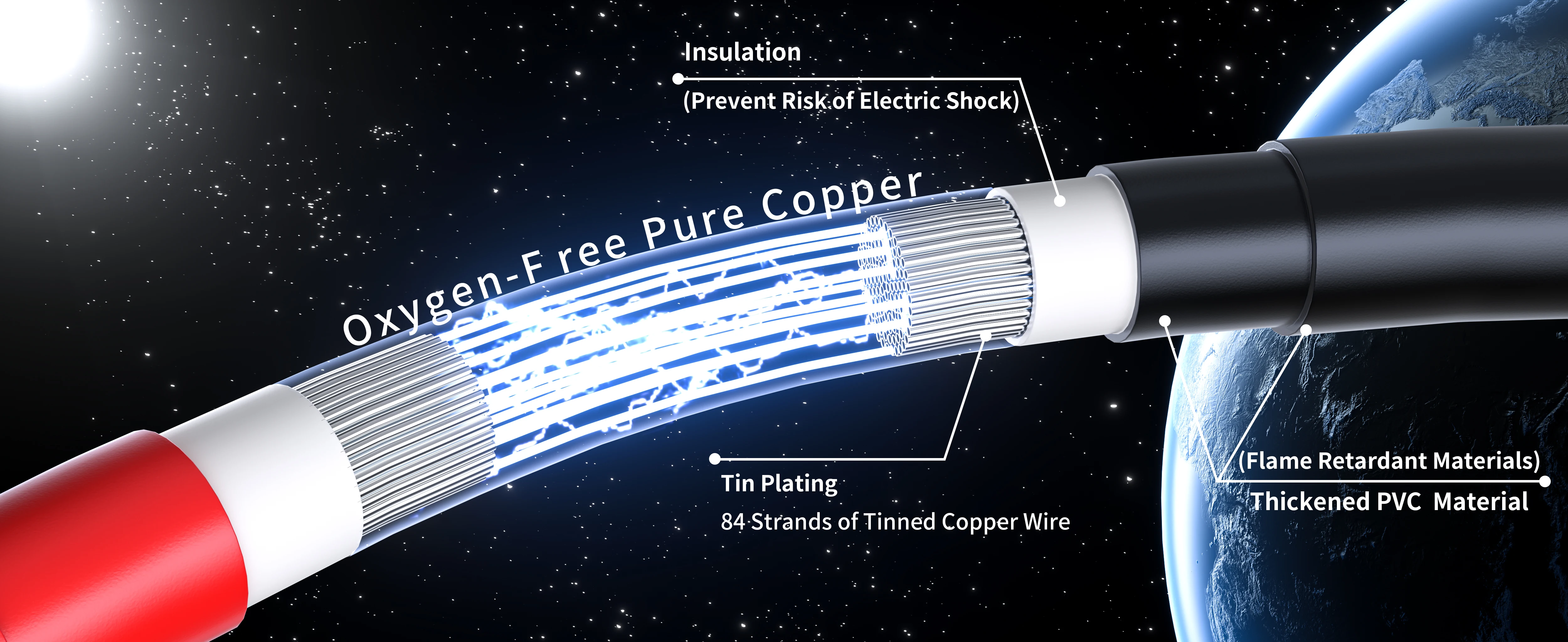 【10 Gauge Wire】The solar cable is made with Fully Annealed stranded bare copper conductor, increases conductivity.Designed to withstand extreme heat and cold (-104°F to +194°F )and 6 mm² is thick enough to push maximum permissible voltage: up to 1.8 kV.