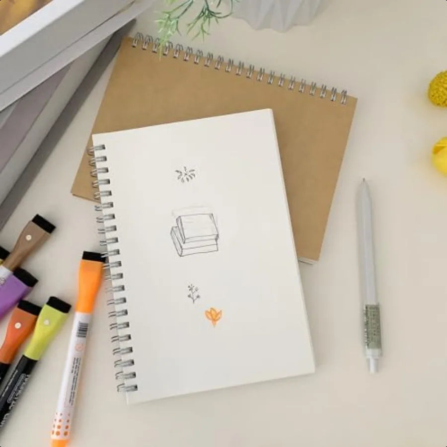 Premium 2Pack Sketchbooks Soft Cover 140 Pages 70 Sheets 7.5 x 5.1 inches 100GSM Paper Brown Spiral Notebooks Set