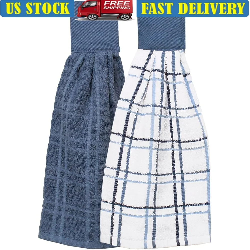 Premium Cotton Kitchen Towel Set of Two Super Soft Absorbent Fast Drying Hook-and-Loop Fastener Perfect Size Durable Machine