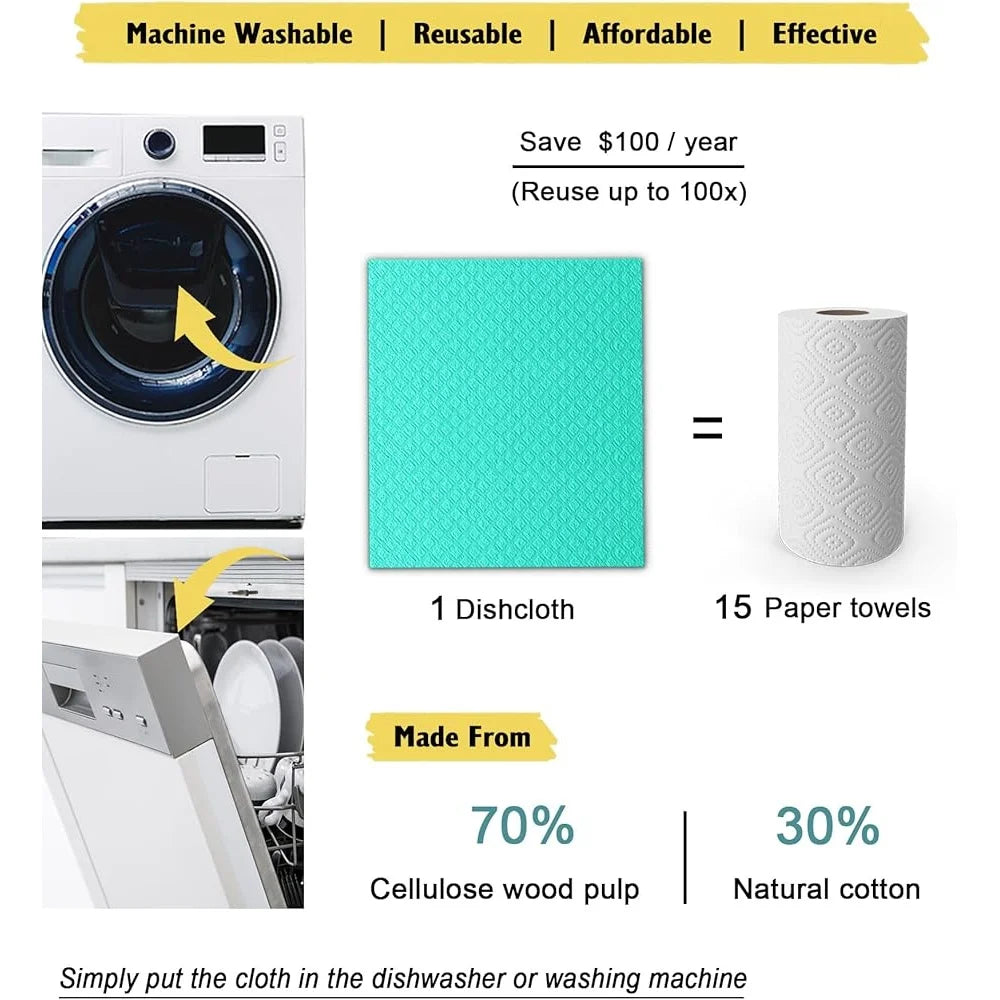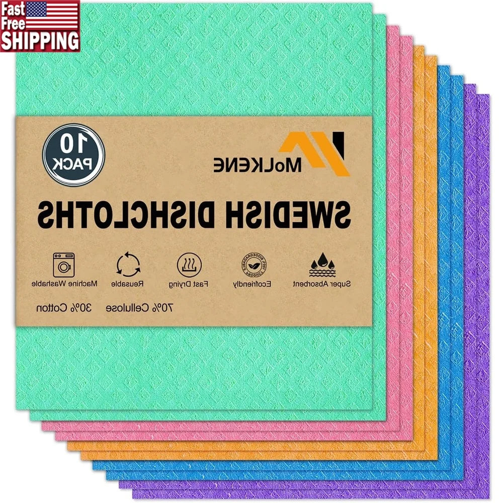 Reusable Swedish Dish Cloths 10 Pack Ultra Absorbent Cleaning Towels Kitchen Cellulose Sponge Cloths Fast Drying Eco Friendly