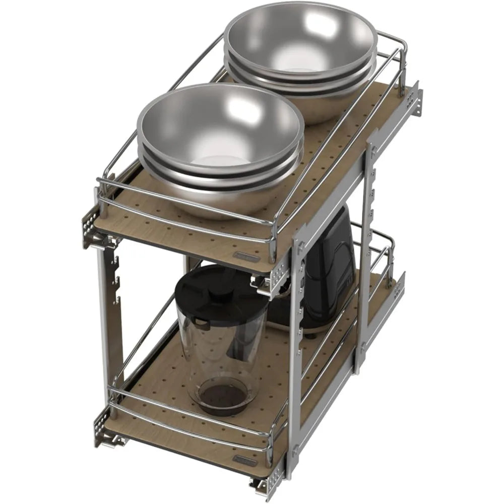 Rev A Shelf 2 Tier Pull Out Kitchen Cabinet Storage Organizer with Solid Bottom and Undermount Soft Close Full Extension Slides