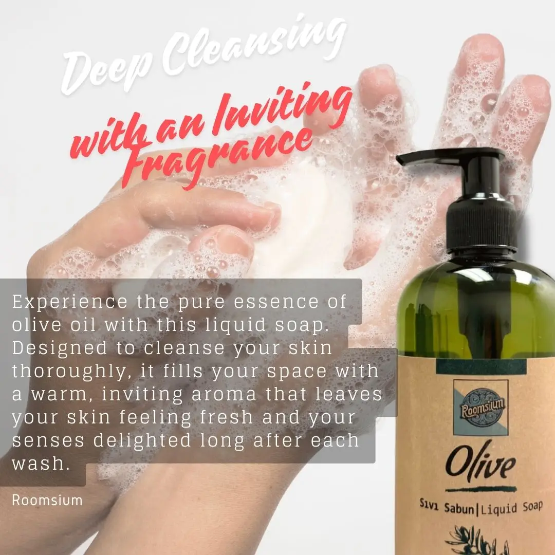 The Roomsium Olive Care Set, proudly Made in Turkey, features a trio of shampoo,shower gel, and liquid soap, enriched with premium olive oil for deep hydration, gentle cleansing,