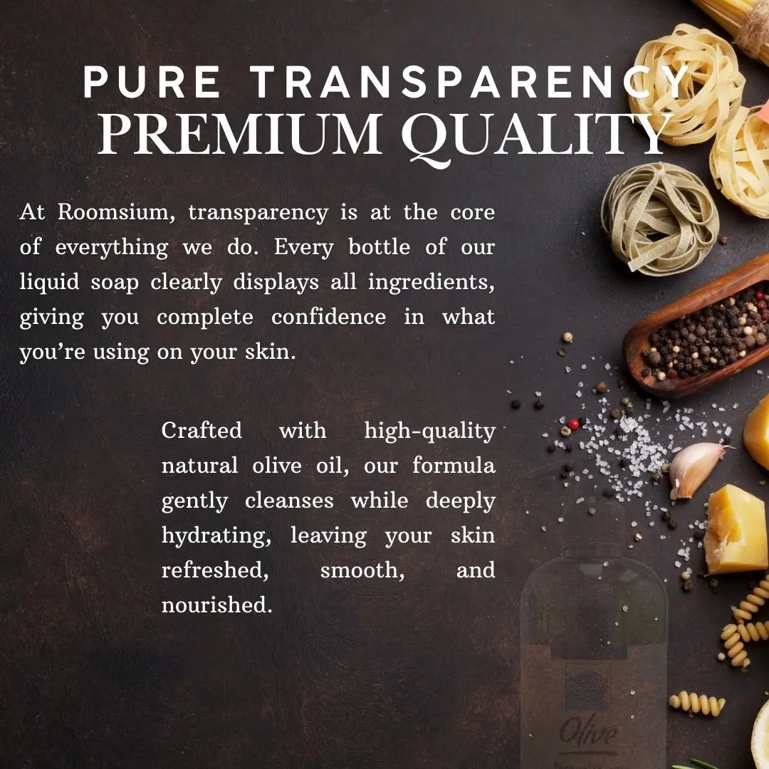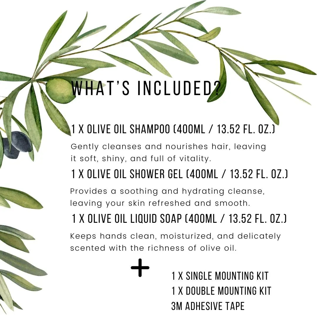 Roomsium Olive Care Set | Shampoo, Shower Gel & Liquid Soap | Refillable, Eco-Friendly & Mediterranean Luxury (3 of Set)