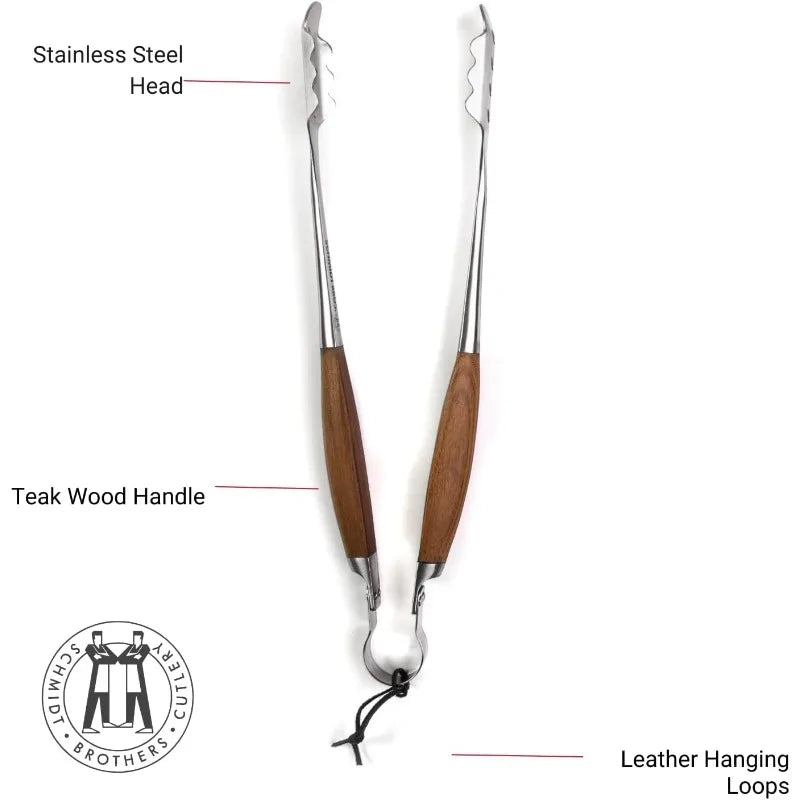 - Teak Wood Handles: Each utensil is complemented with beautiful, bonded teak wood handles, providing a comfortable grip while adding an elegant touch to your grilling setup.