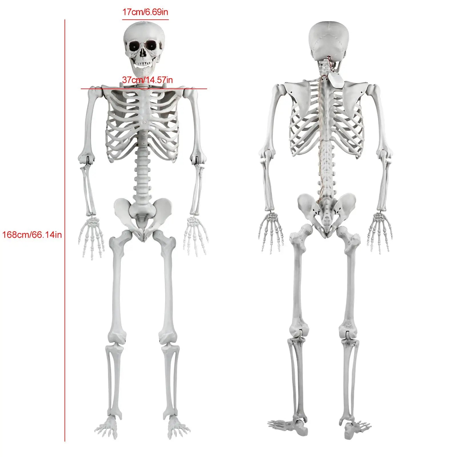 165cm Realistic Plastic Halloween Skeleton Decoration with Adjustable Joints for Home Ornament