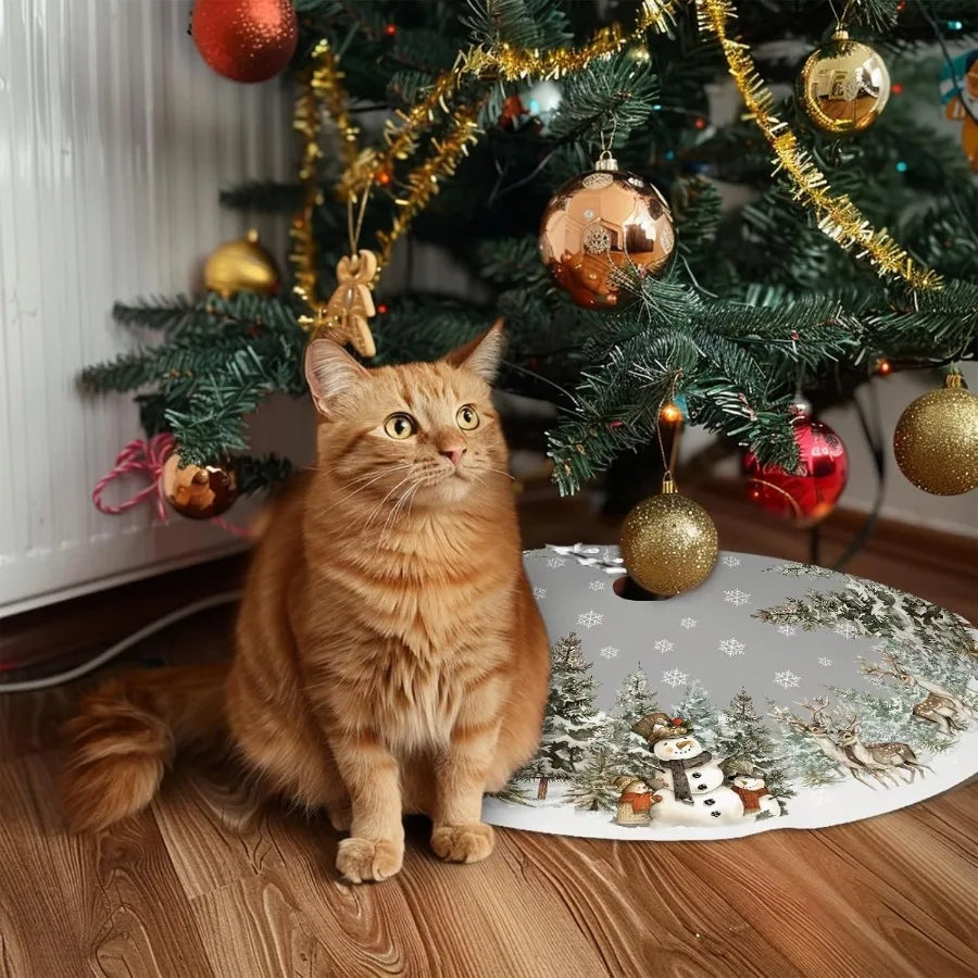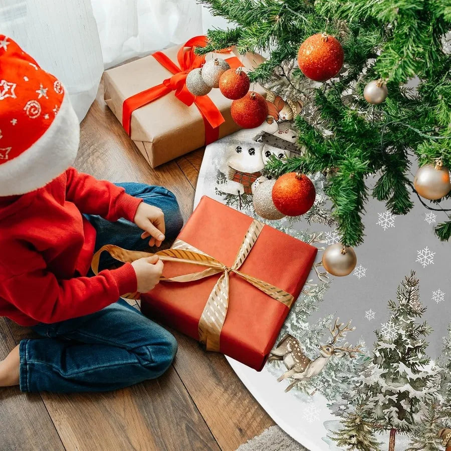Snowman Christmas Tree Skirt 36 Inch Reindeer Snowflakes Xmas Tree Decorations for Winter Holiday Party Home Decor Indoor Outdo