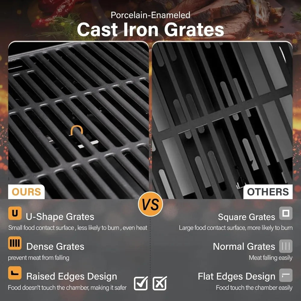 - Durable Porcelain-Enameled Cast Iron Grates: These grates provide superior heat retention and an even cooking surface, ensuring delicious results every time.