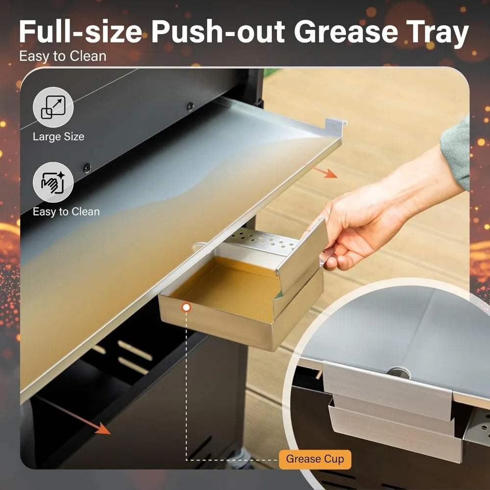 - Removable Grease Tray: Cleaning up after grilling is a breeze, thanks to the easy-to-remove grease tray that helps maintain a tidy cooking environment.