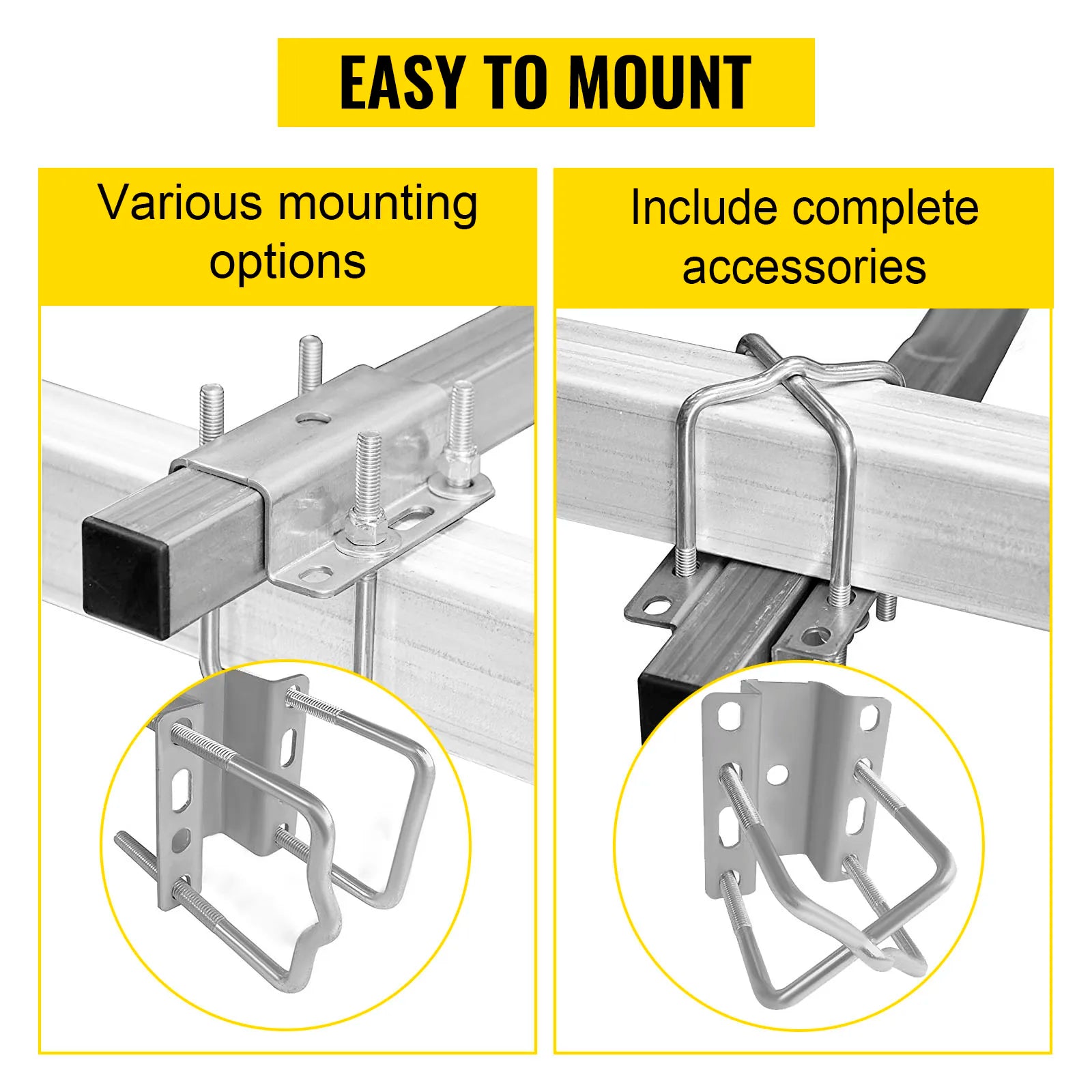 Equipped with all necessary mounting accessories, this guide-on can be installed either on the top or bottom of the trailer frame. The U-bolts are compatible with both large and small frames.