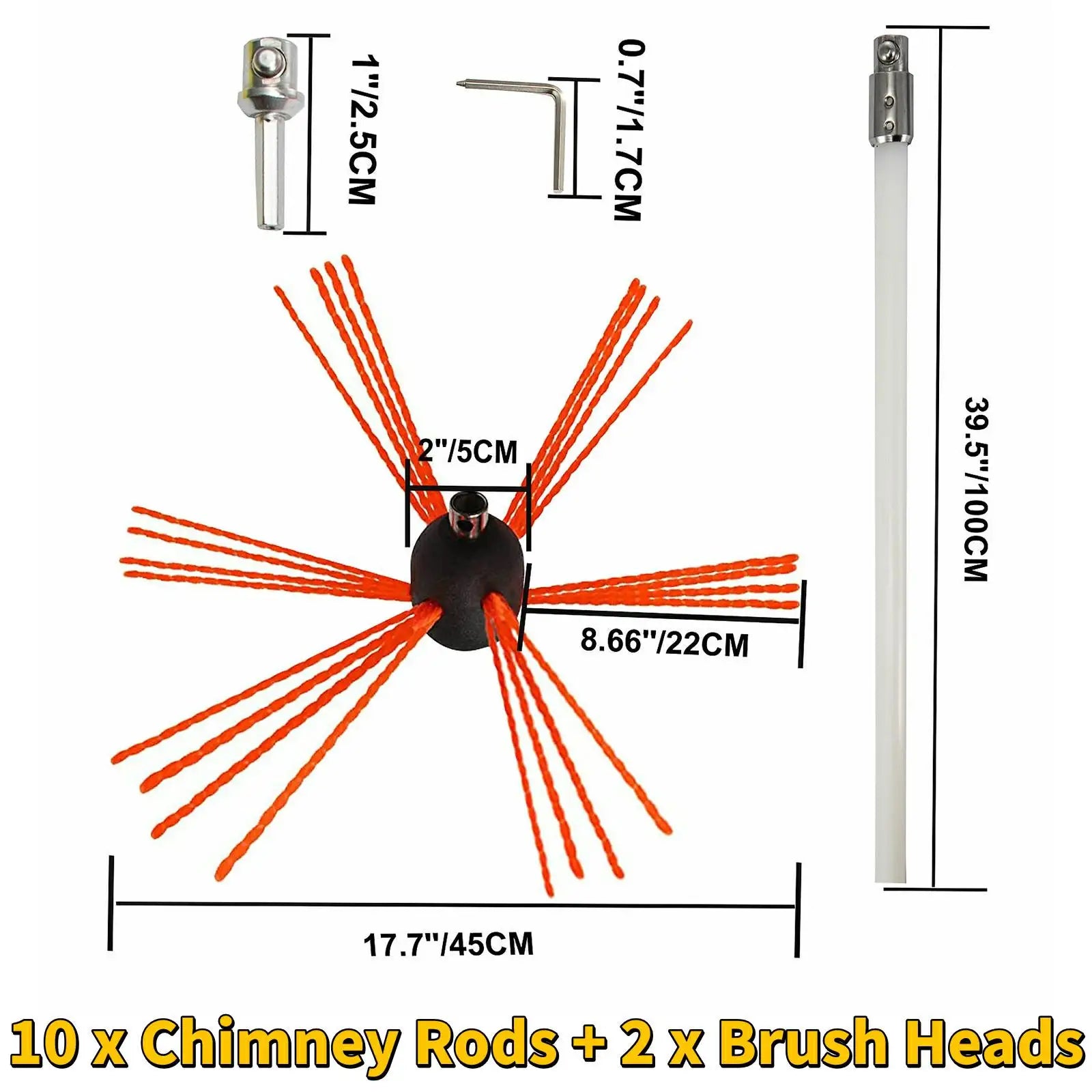 Easy to Use & Clean: This kit supports both power and manual sweeping. Attach the brush to a power drill to efficiently remove soot, or use it manually for more control. The kit includes 6 rods, each 39.4 inches (100 cm) long, which can be adjusted to suit your cleaning needs.