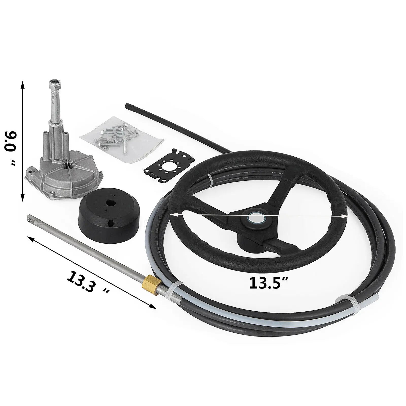SucceBuy Outboard Marine Steering System 13" Rotary Wheel 10'-16' Mechanical Cable for Yacht Fishing Engine Boat Accessories