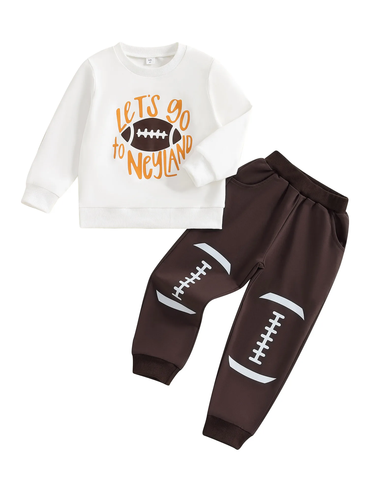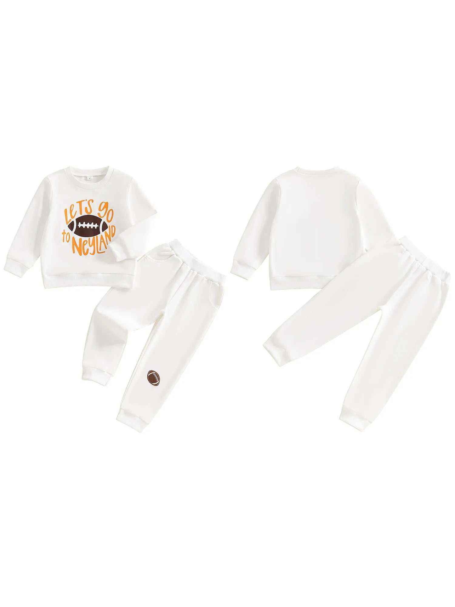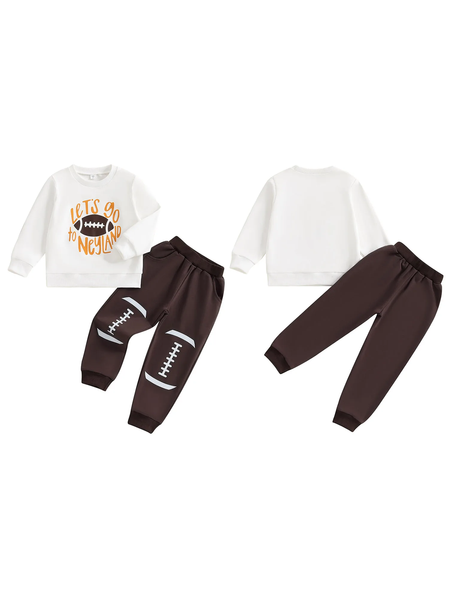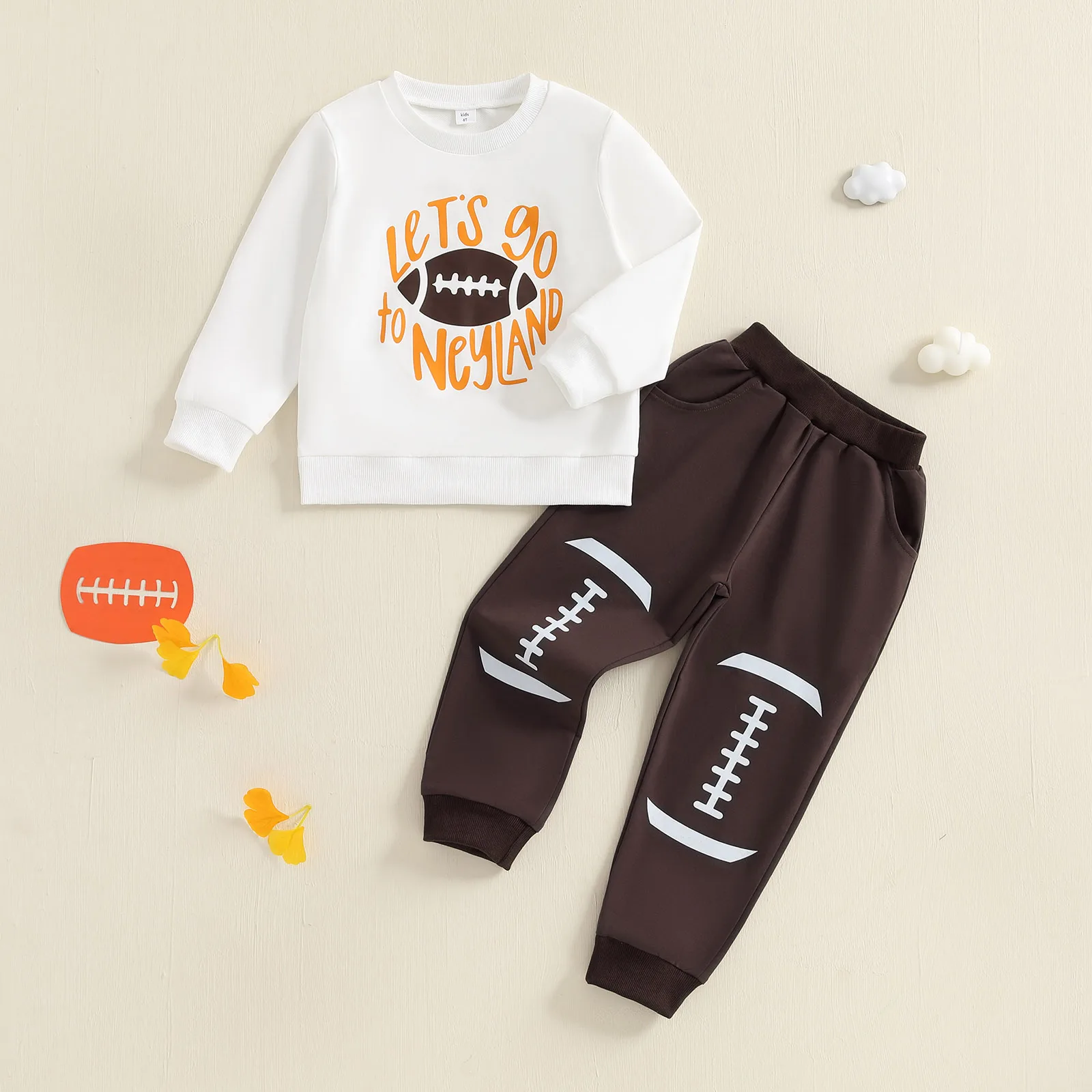 Baby Boy Fall Outfit Rugby Letter Print Long Sleeve Sweatshirt and Elastic Pants 2 Piece Clothes for ToddlerFeatures