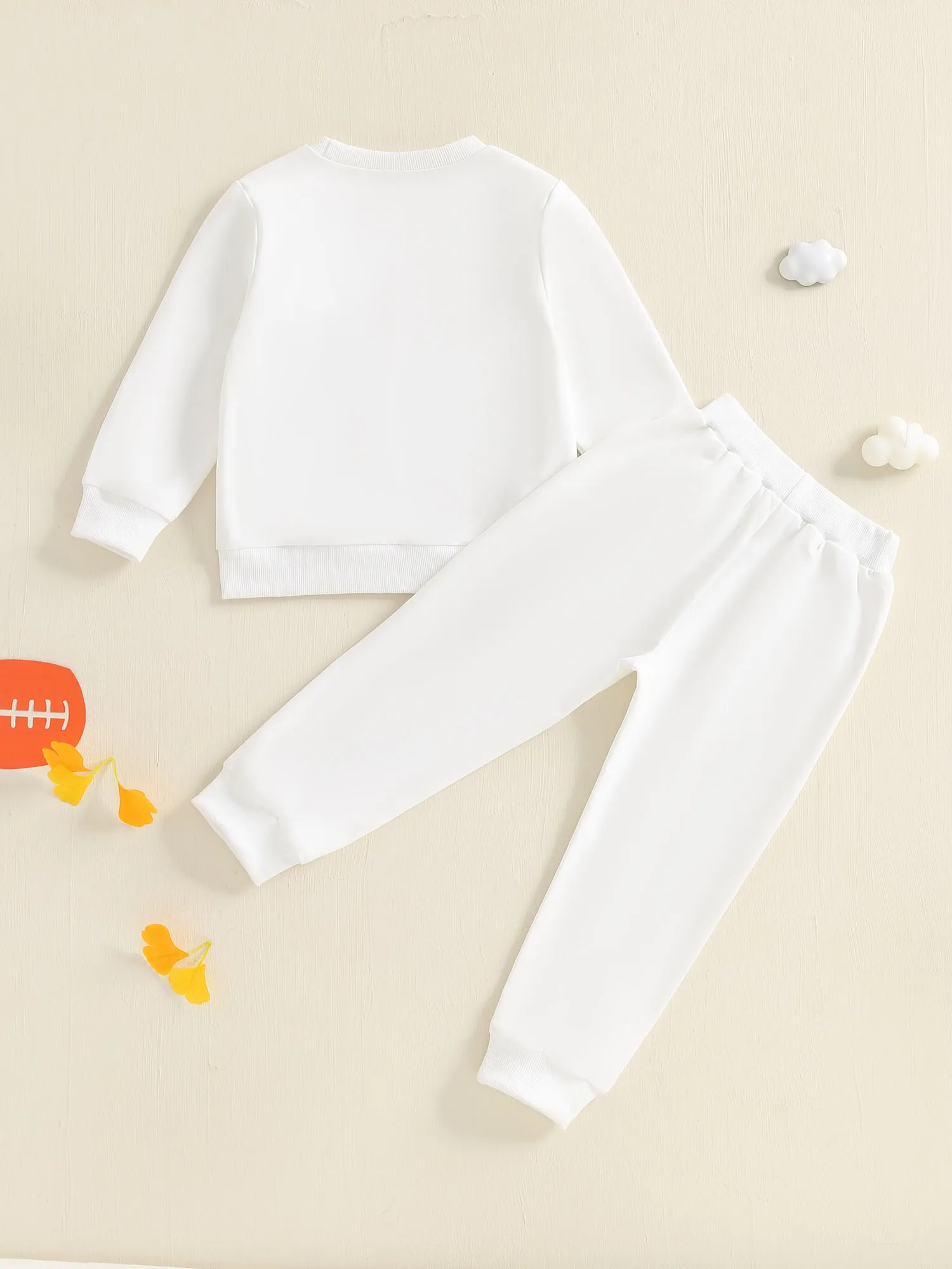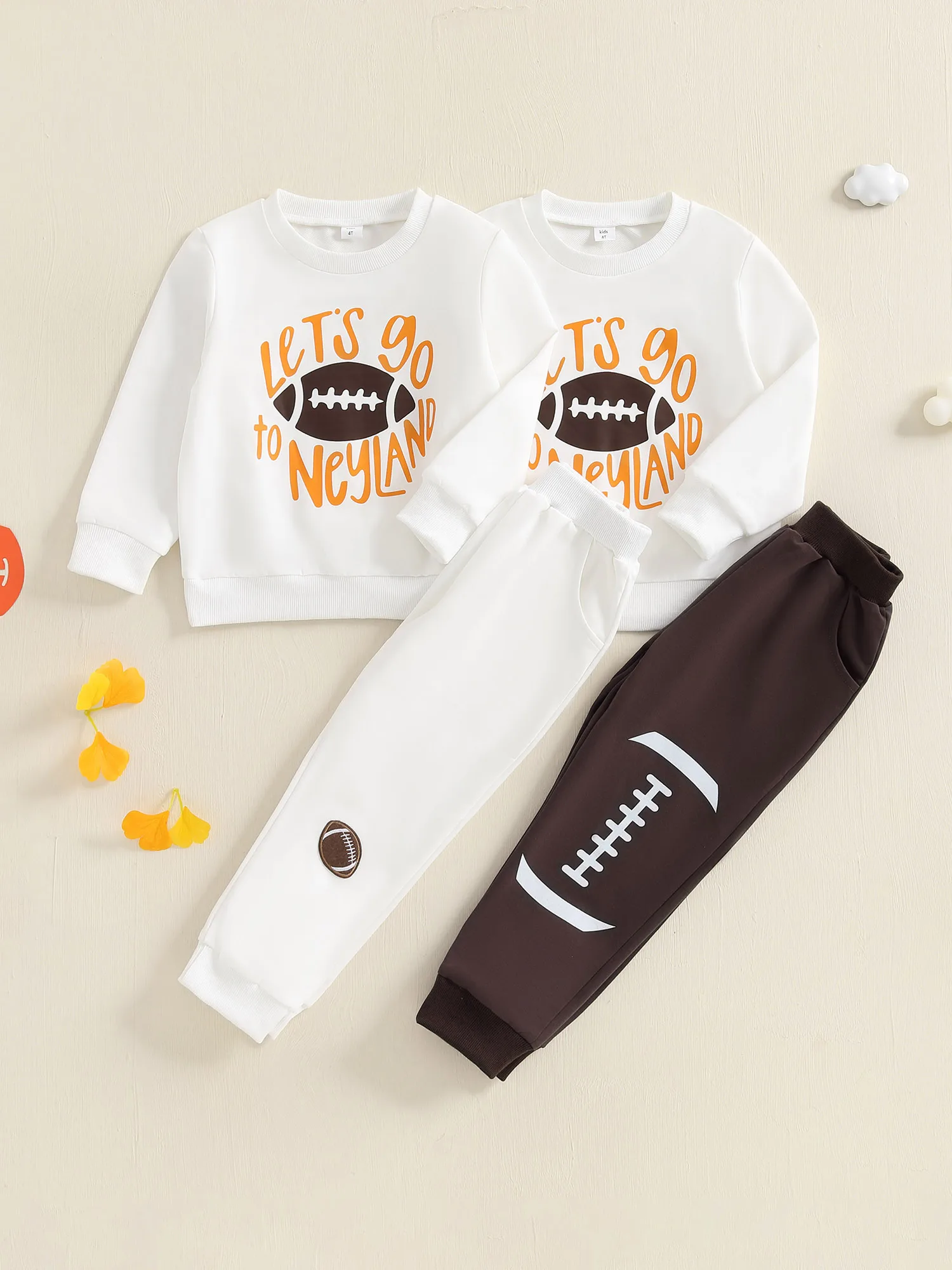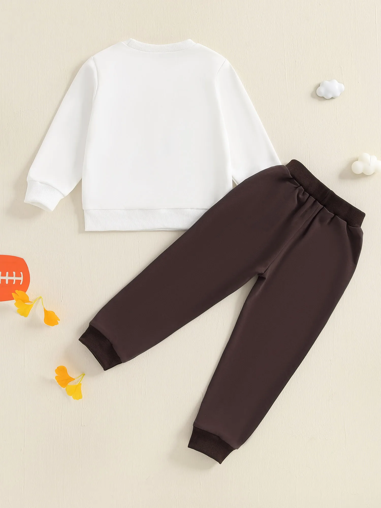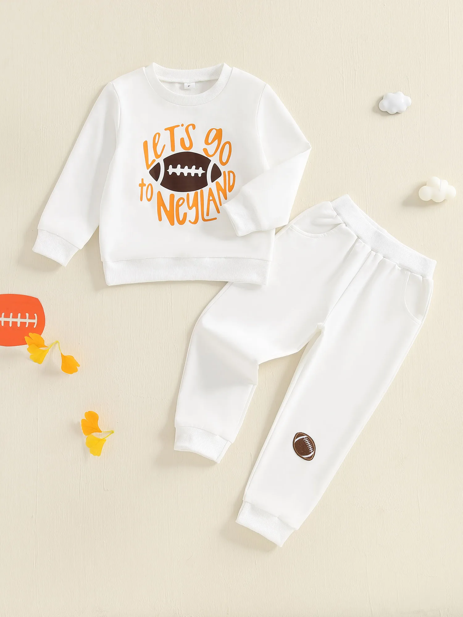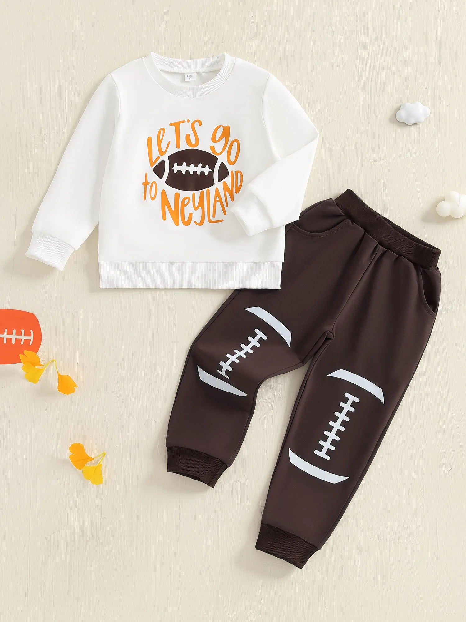 Baby Boy Fall Outfit Rugby Letter Print Long Sleeve Sweatshirt and Elastic Pants 2 Piece Clothes for ToddlerFeatures