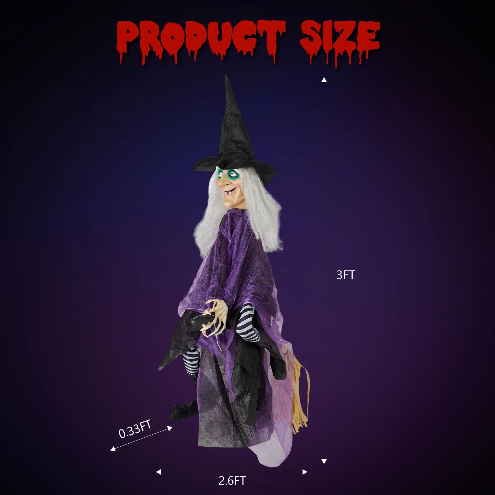 USA Stock 3ft Voice Control Witch Halloween Hanging Decoration Without Battery