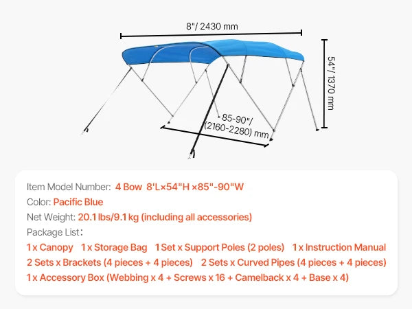 - Quick & Easy Setup: Installation is a breeze with the aluminum alloy frame, pre-drilled base, and adjustable nylon straps. Whether you have a pontoon, canoe, aluminum dinghy, or fishing boat, this bihimi top fits easily on most boat types, getting you back to enjoying the water in no time.
