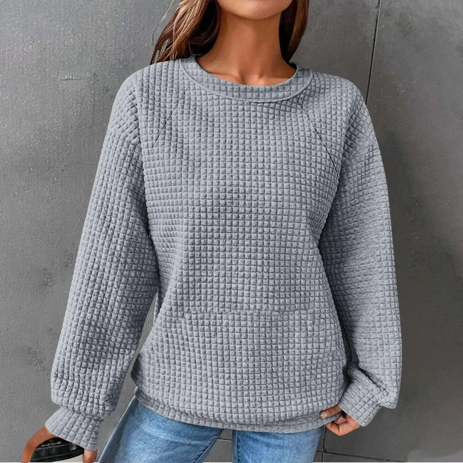 Women's Fashionable Long-sleeved Pullover And Solid-color Sweatshirt